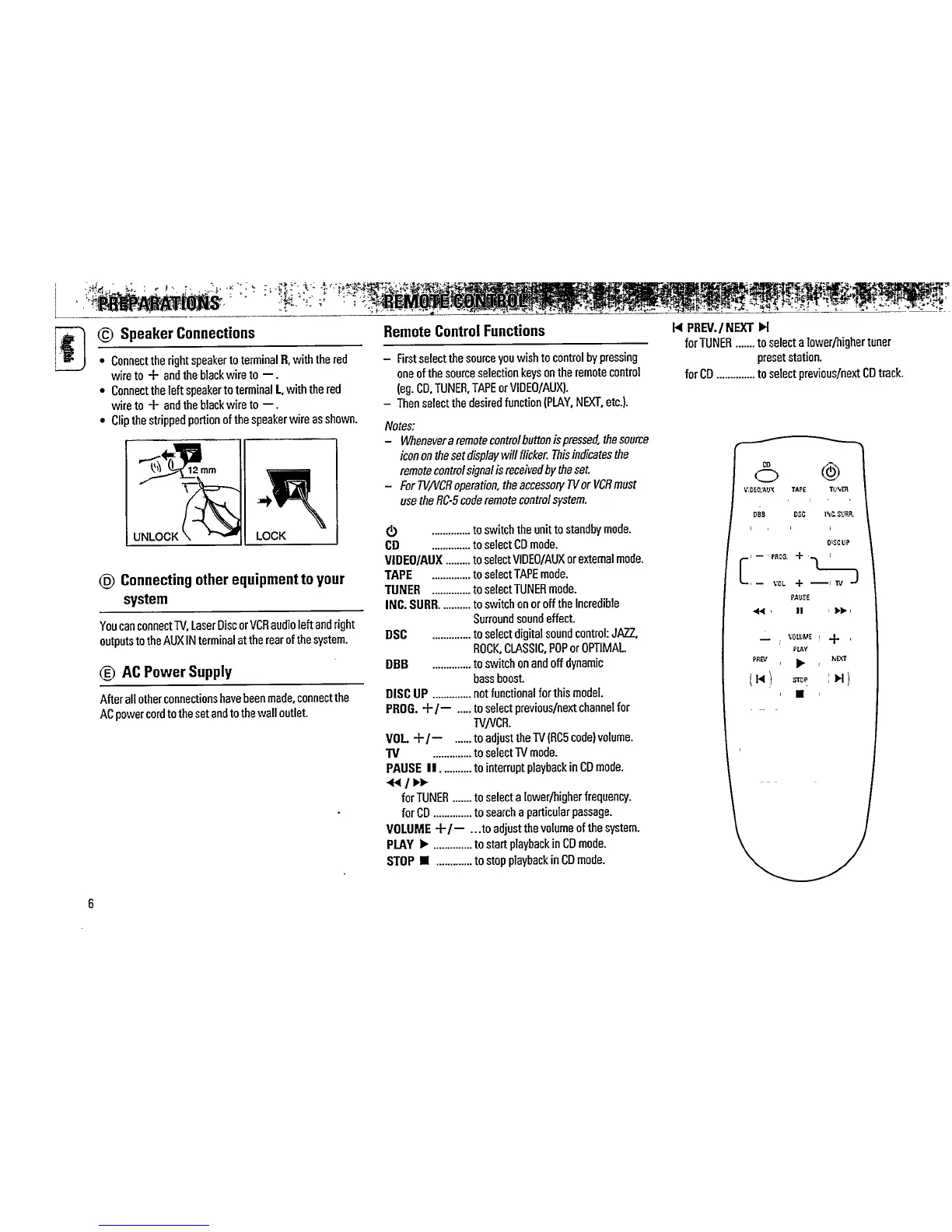 Philips FW 335 - System Setup and Connections; Speaker Connection Guide; External Audio Input Connection; AC Power Cord Connection