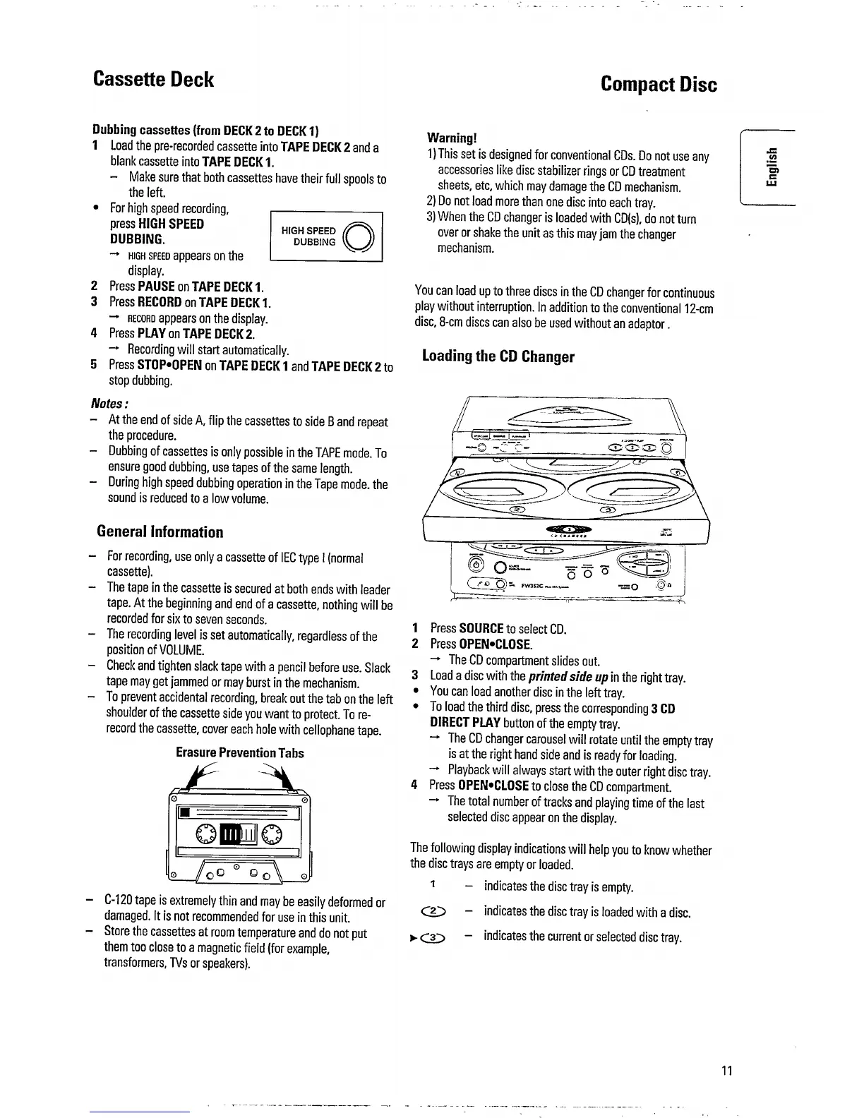 Philips FW 352C - Advanced Cassette and CD Features; Cassette Dubbing Procedures