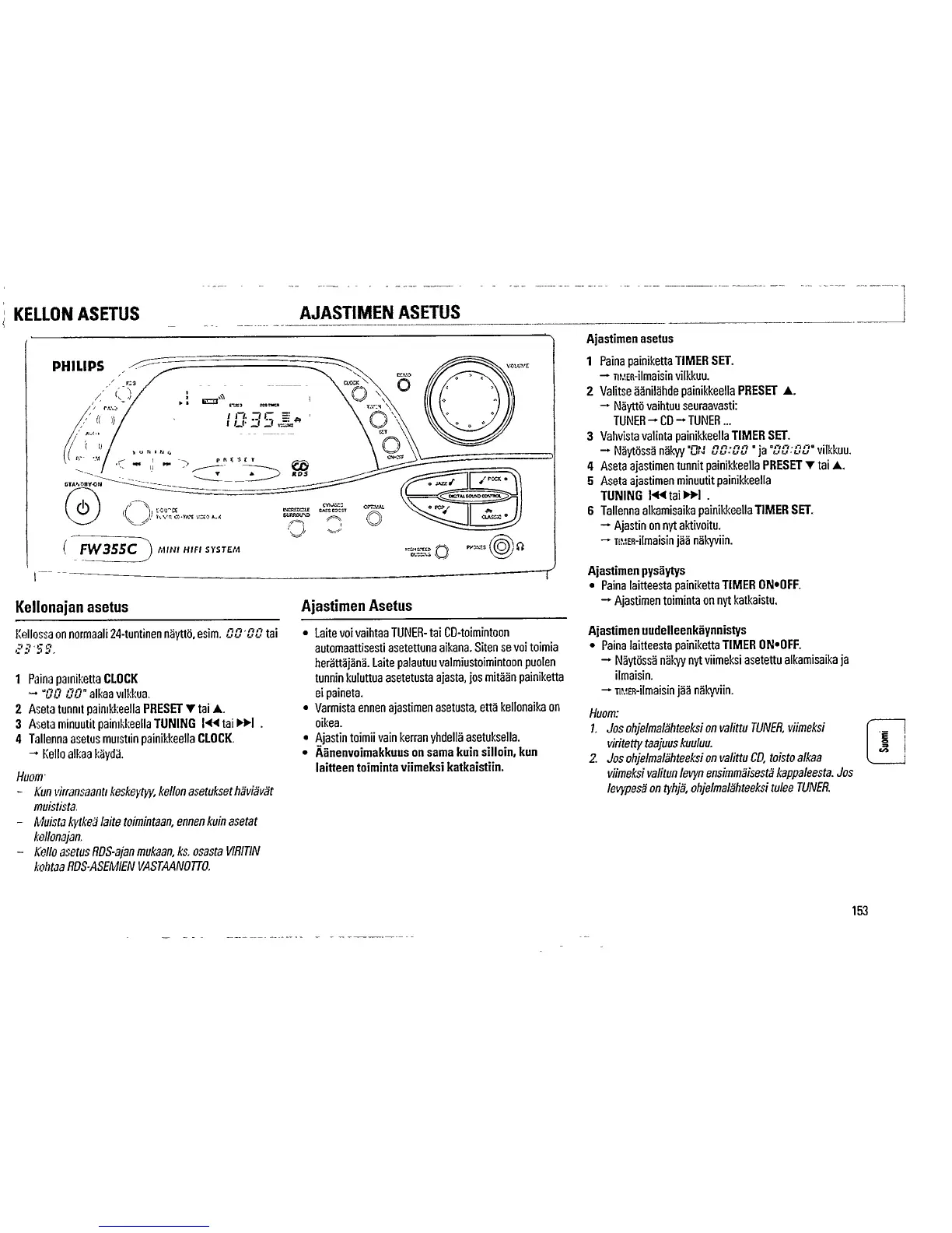 Philips FW 355C - Clock and Timer Settings; Setting the Clock; Setting the Timer