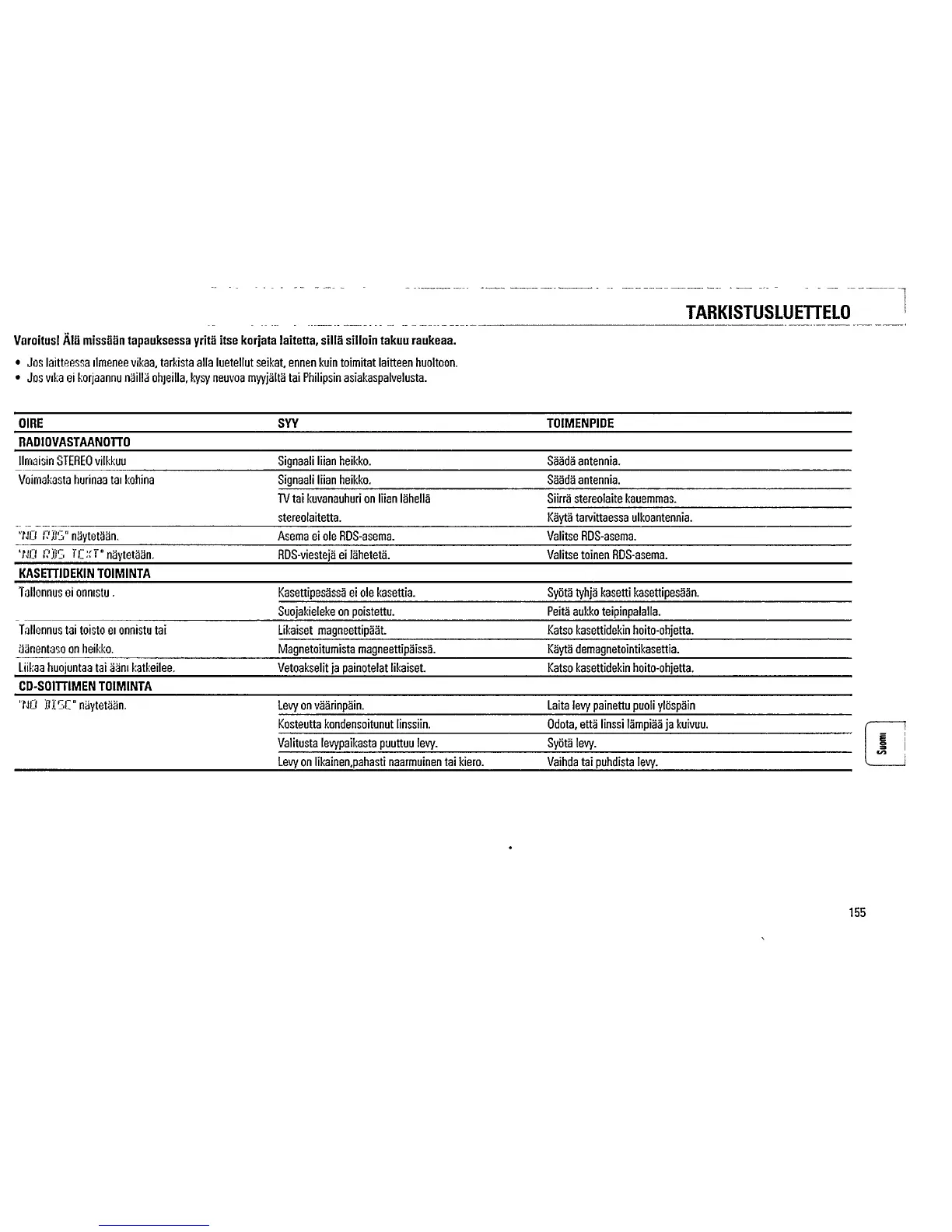 Philips FW 355C - Troubleshooting Guide; Radio Reception Problems; Cassette Deck Issues; CD Player Issues