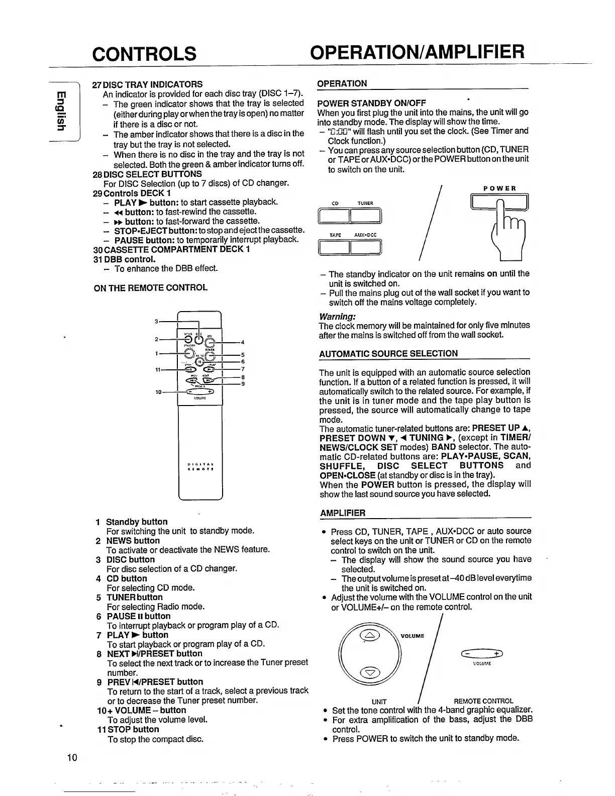 Philips FW 36 - Disc, Deck, and DBB Controls; Operation and Amplifier; Power On;Off and Source Selection