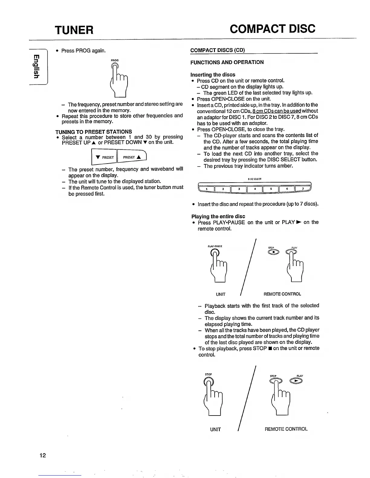 Philips FW 36 - Compact Disc Functions; Inserting and Playing CDs