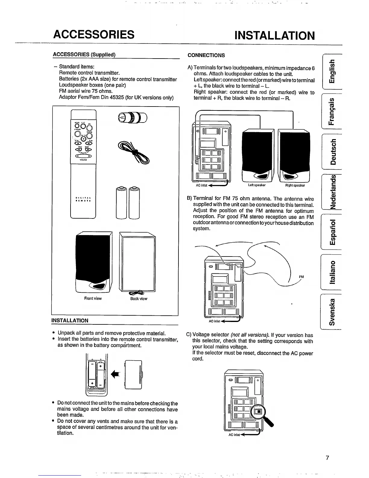 Philips FW 36 - Accessories; Installation; System Connections Guide