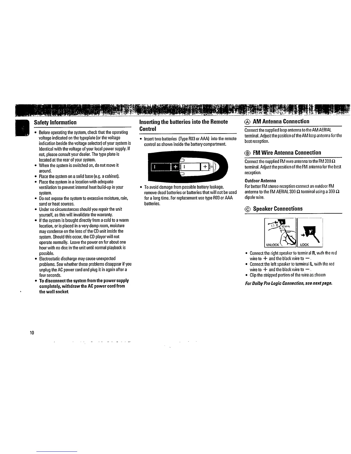 Philips FW 375P - System Preparation; Initial Safety Checks; Remote Control Setup; Antenna and Speaker Connections