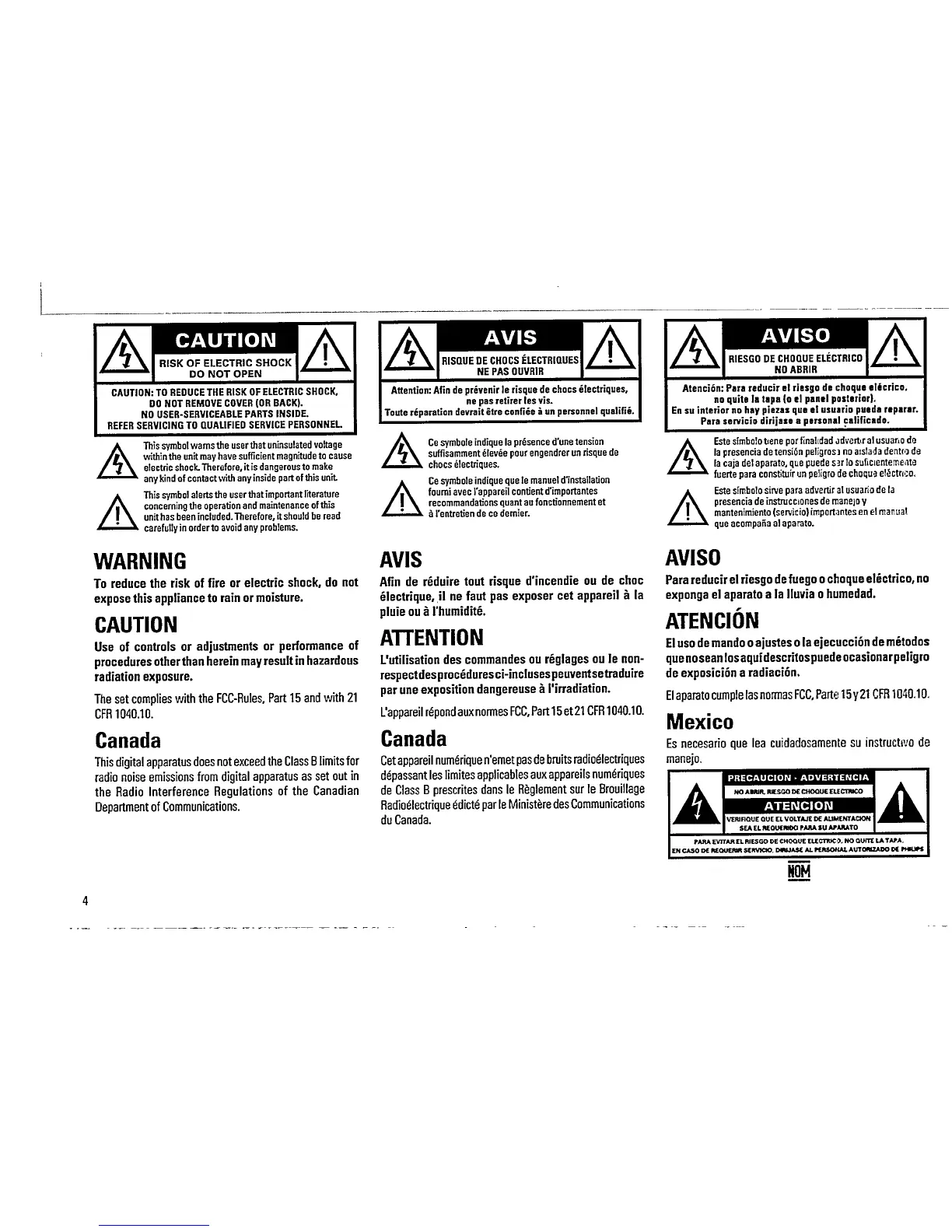 Philips FW 375P - Safety Precautions; Electrical and Fire Hazard Warnings
