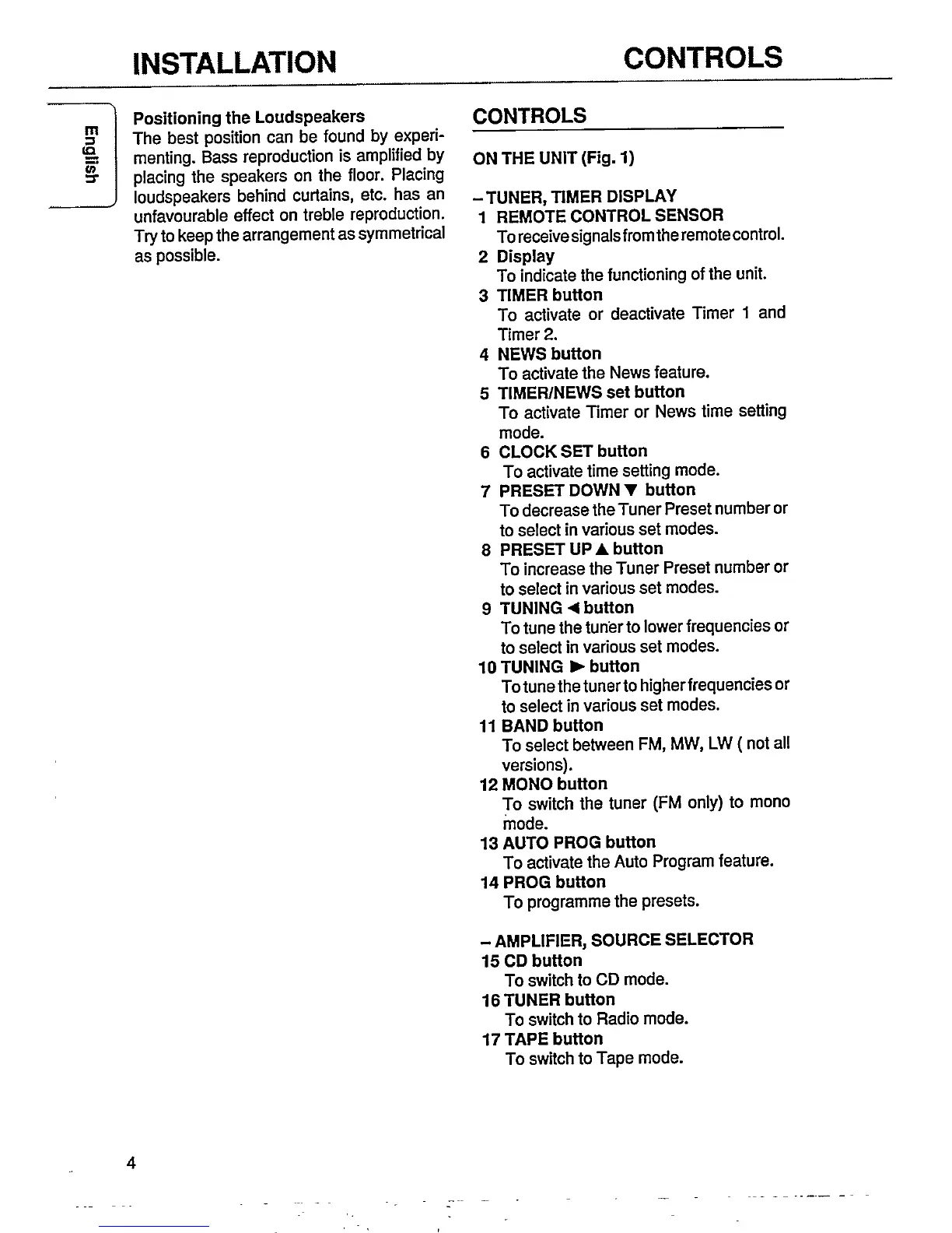 Philips FW 41 - Loudspeaker Placement Advice; Unit Controls and Features; Main Unit and Amplifier Controls