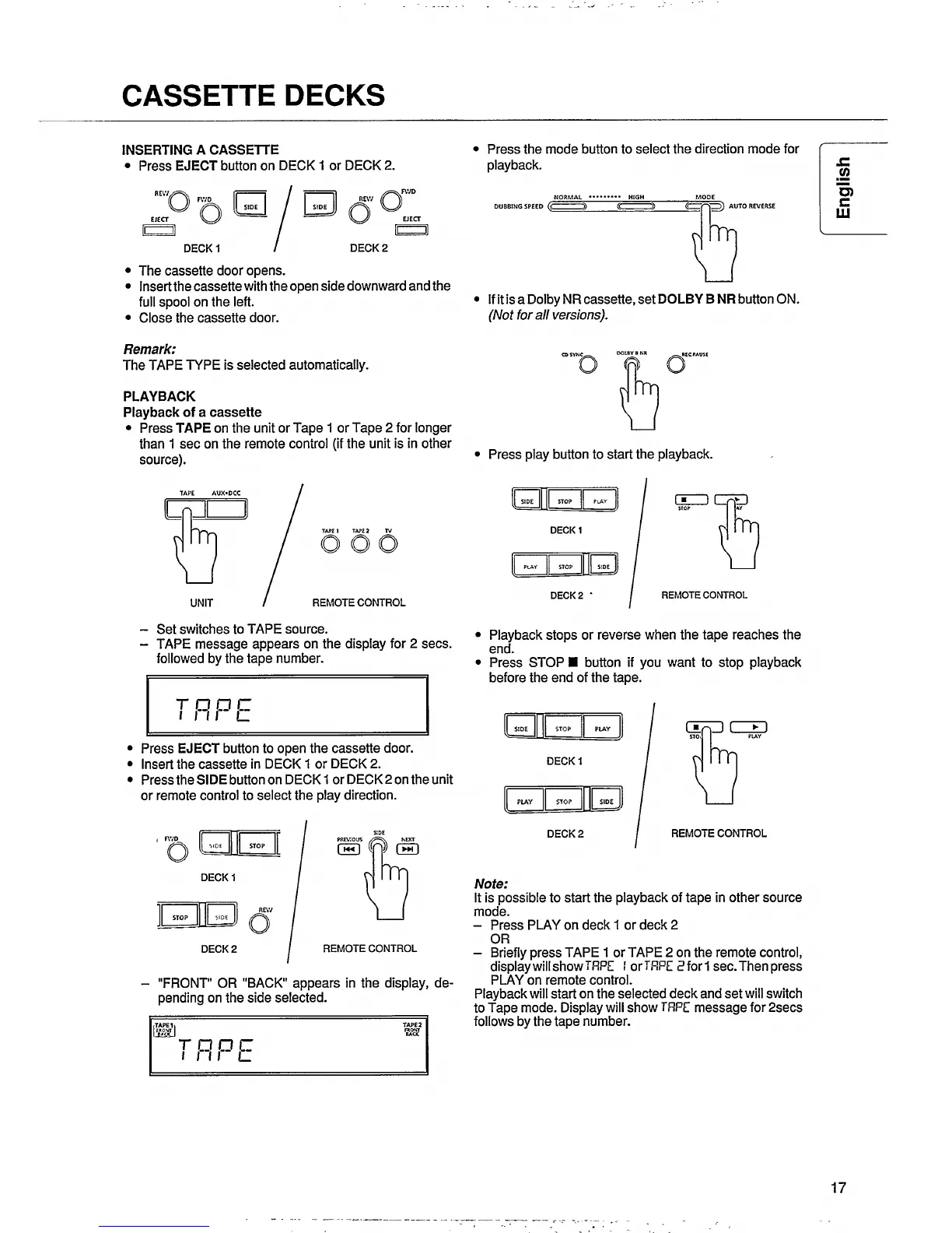 Philips FW 46 - Cassette Deck Operations; Inserting and Playing Cassettes