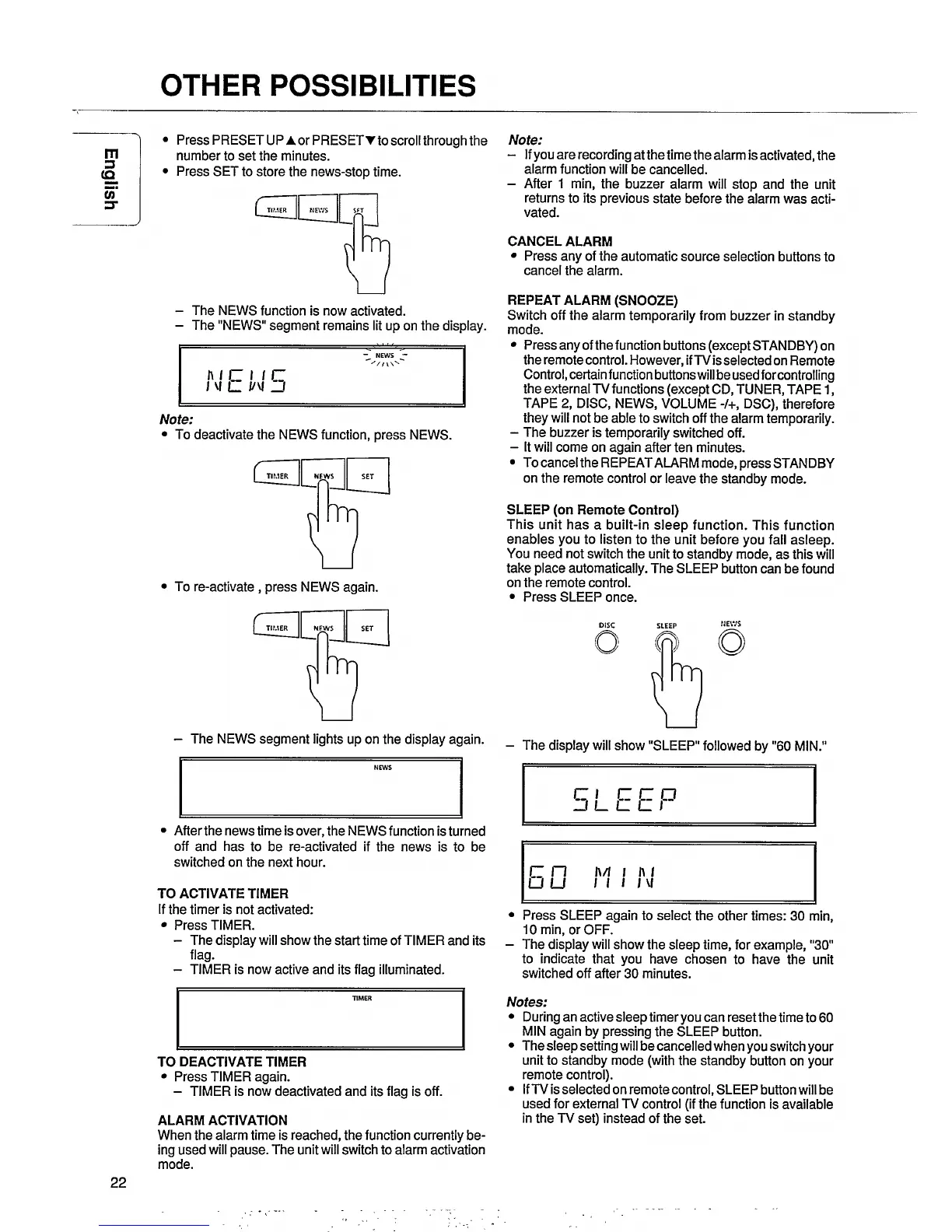 Philips FW 46 - To Activate Timer; To Deactivate Timer; Alarm Activation; Repeat Alarm