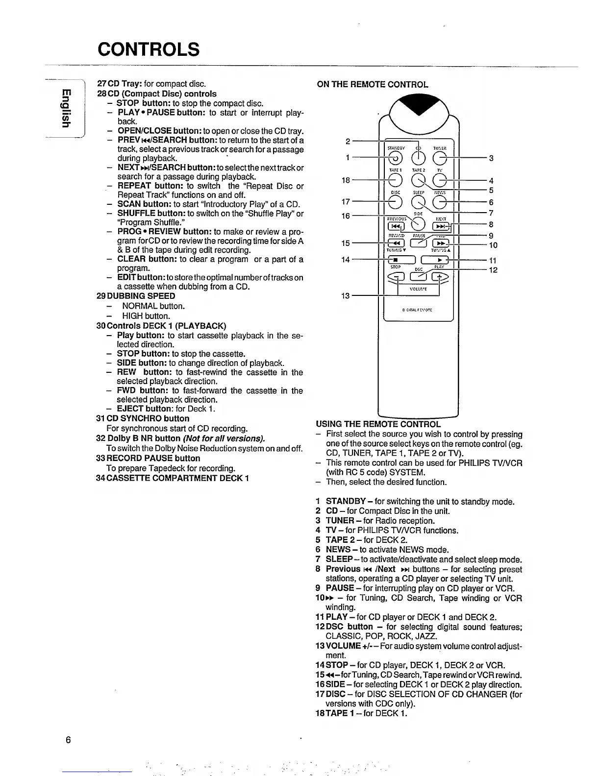 Philips FW 46 - Unit Controls and Remote; Remote Control Buttons and Usage