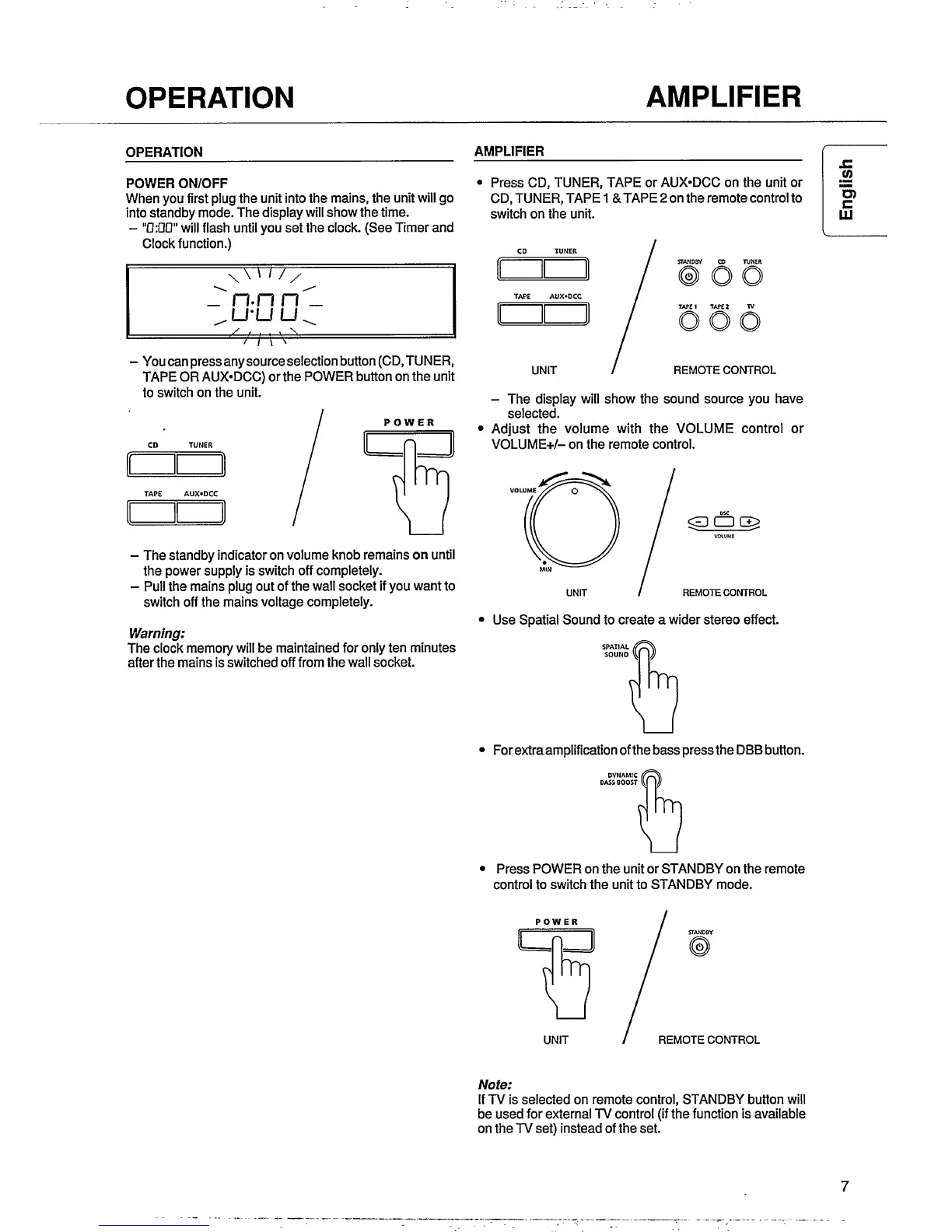 Philips FW 46 - System Operation; Powering On and Standby Mode; Amplifier Functions