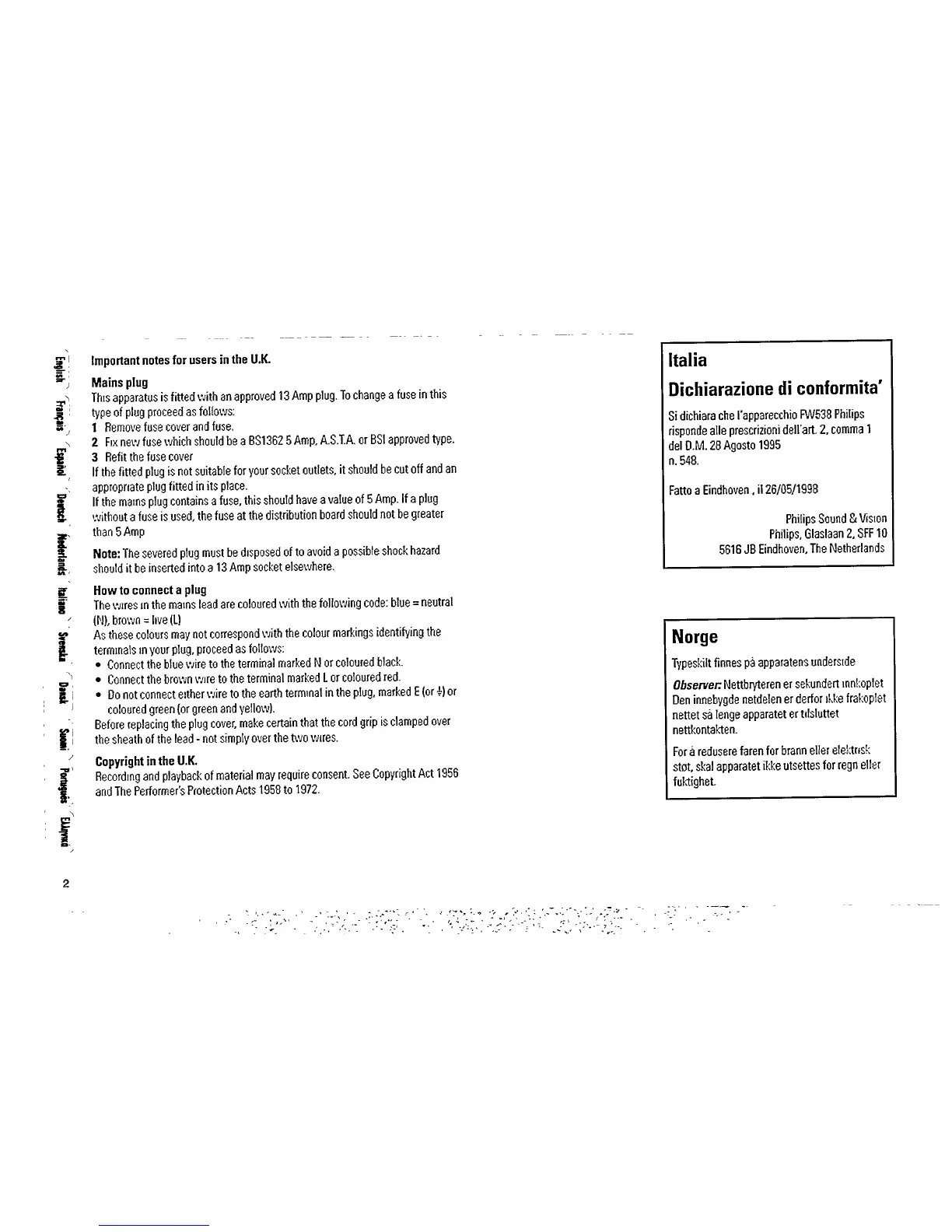 Philips FW 538 - Important notes for users in the U.K.; Mains Plug Safety and Replacement; Connecting the Mains Plug Correctly