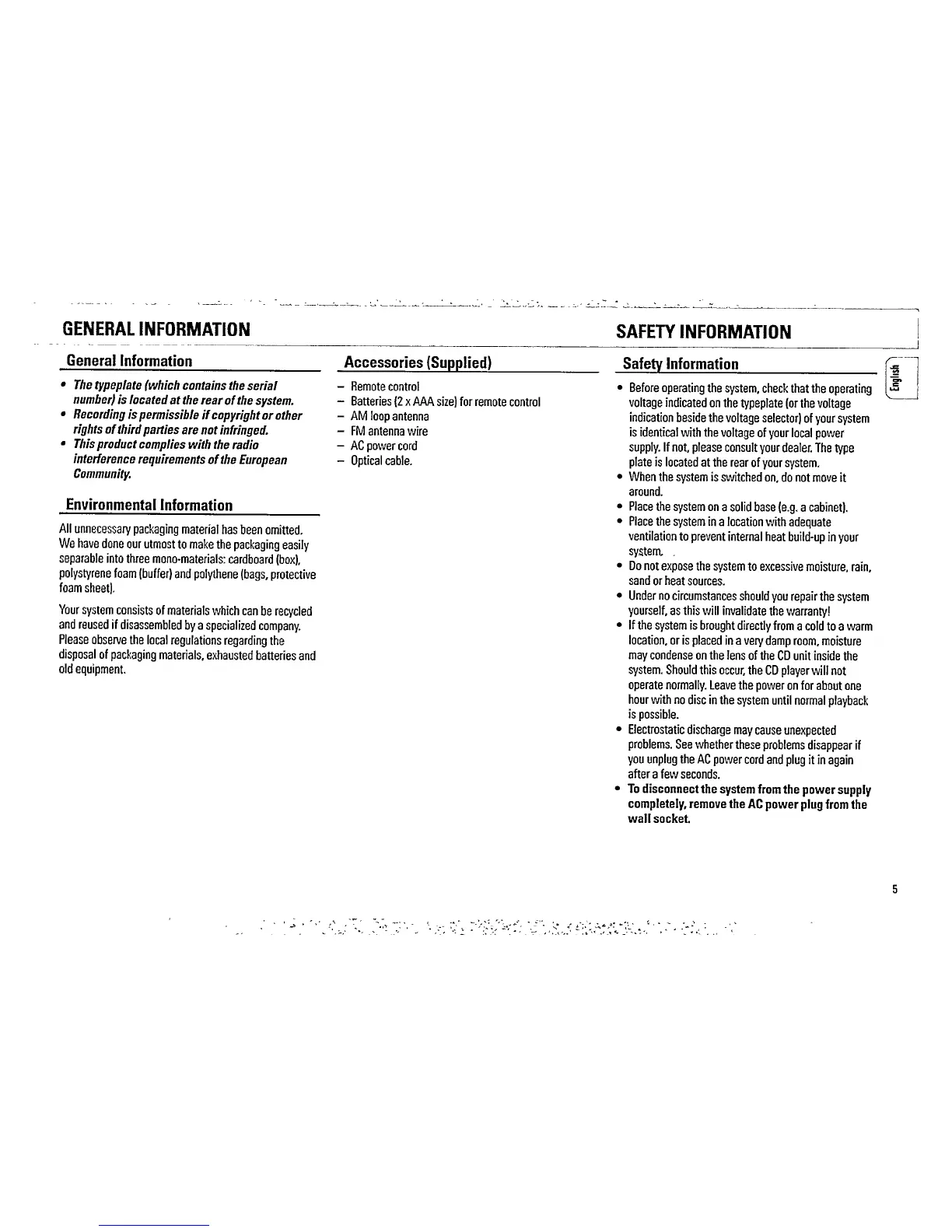 Philips FW 538 - General Information and Safety; System Operating Safety Precautions