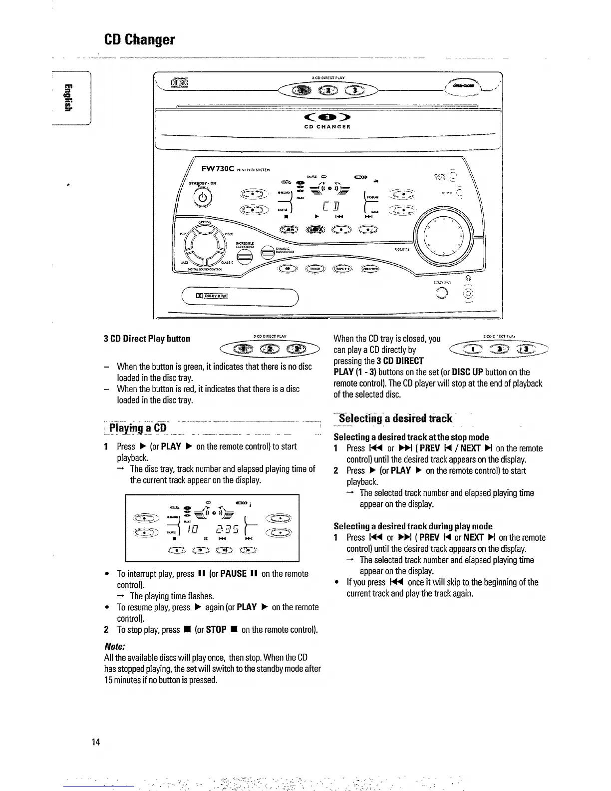 Philips FW 730C - CD Playback and Track Selection; Direct CD Play and Basic Playback; Selecting Tracks During Play