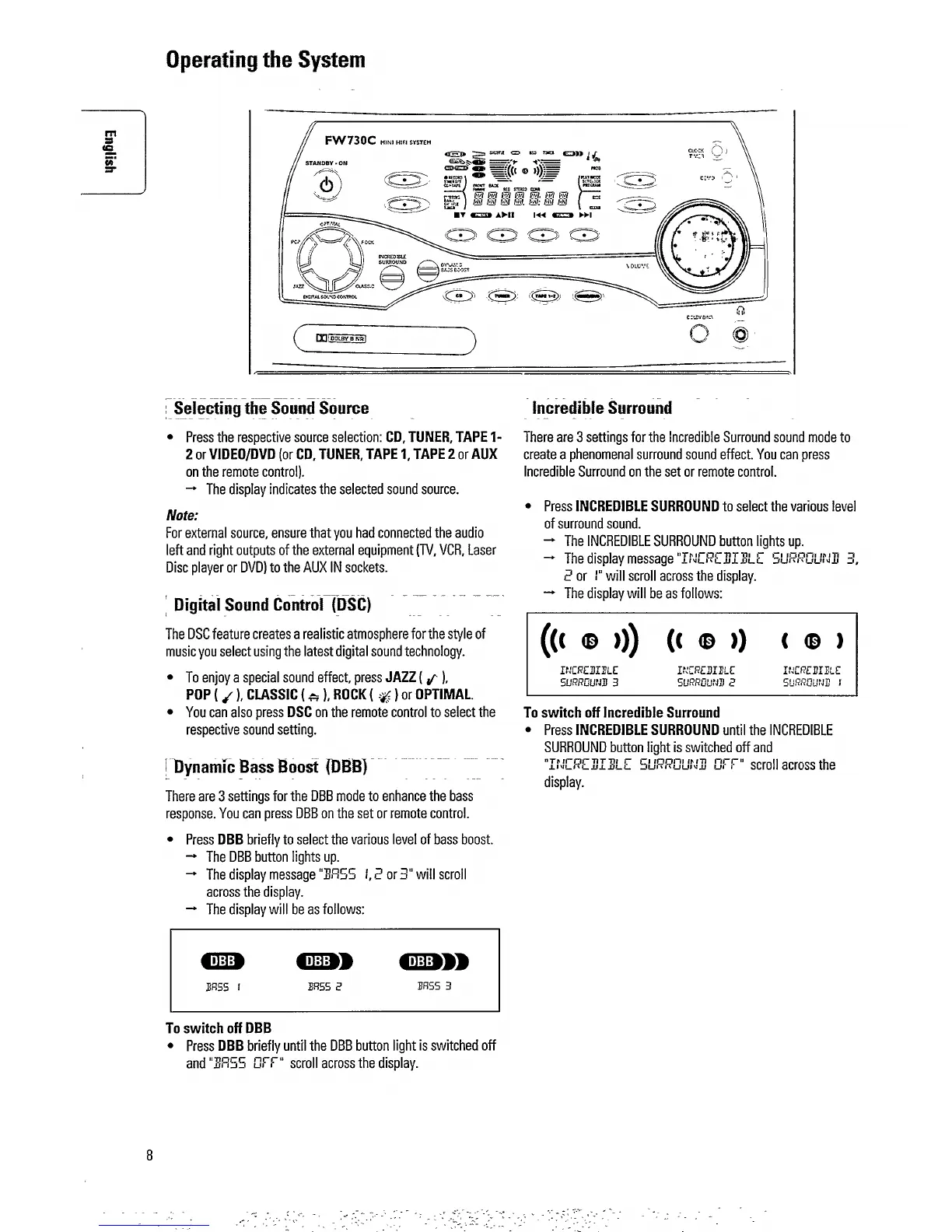 Philips FW 730C - Sound and Playback Features; Sound Source Selection and Effects; Incredible Surround Sound