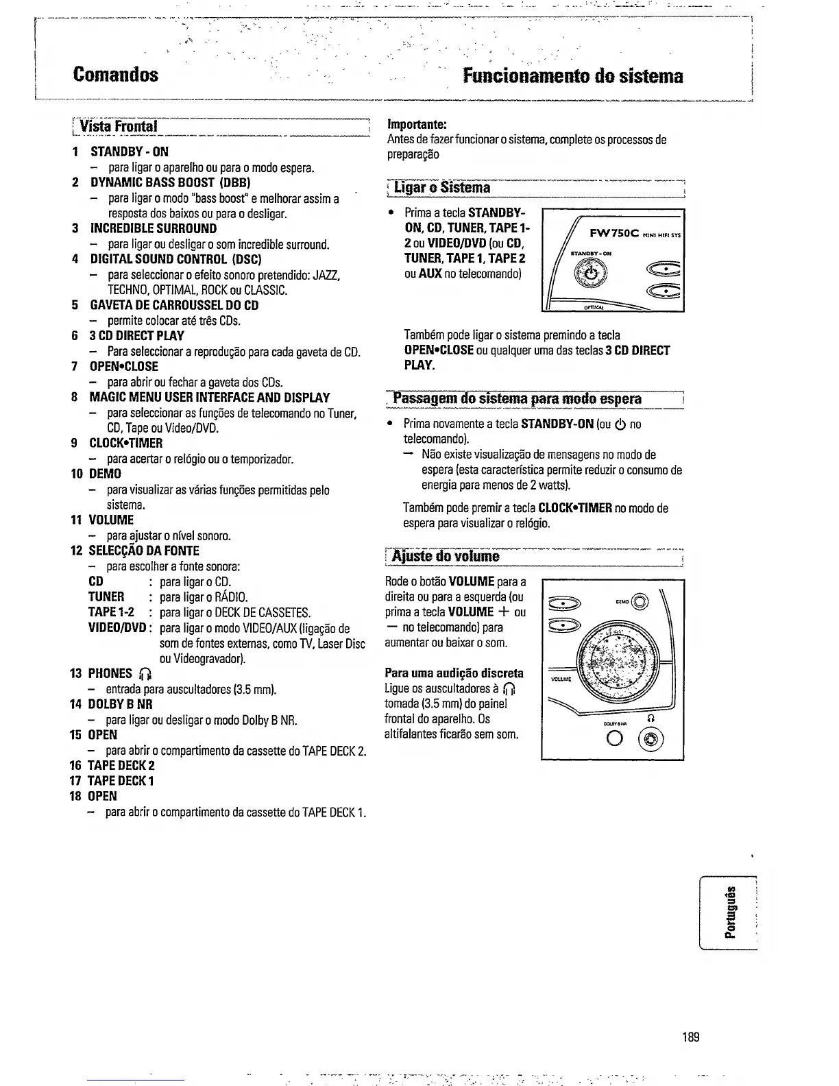 Philips FW 750C - System Start-up and Volume; Turning System On;Off