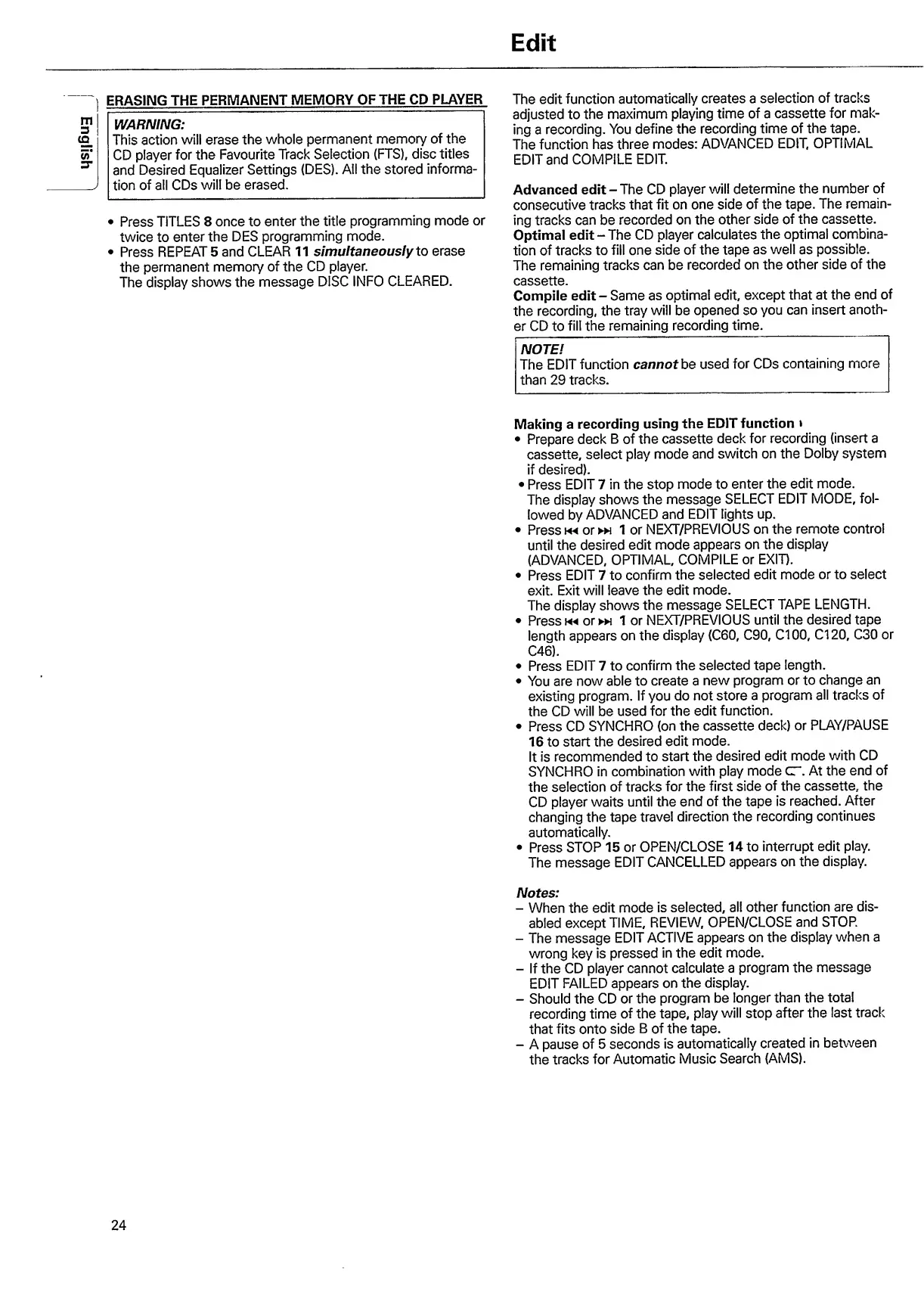 Philips FW 80 - CD Recording and Editing; Making Recordings Using the Edit Function