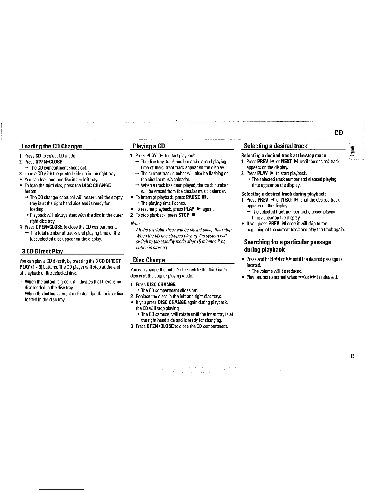 Philips FW 855C - Playing and Selecting CDs; CD Playback Control; Track and Passage Selection; Disc Changing