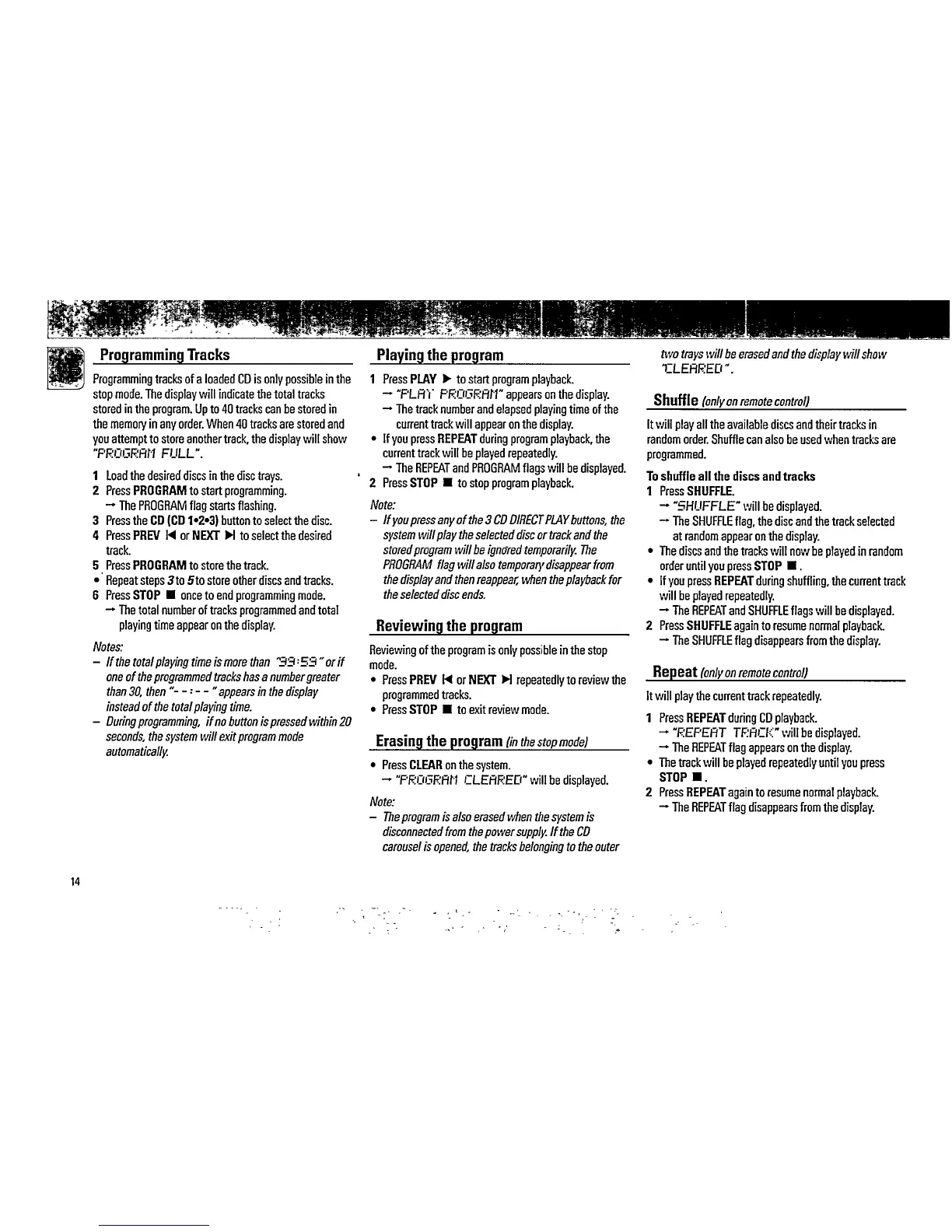 Philips FW 855C - CD Programming and Playback Modes; Programming Tracks; Program Playback; Shuffle and Repeat