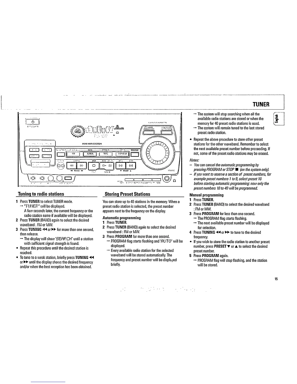 Philips FW 855C - Radio Tuner Operations; Tuning Radio Stations; Storing Preset Stations