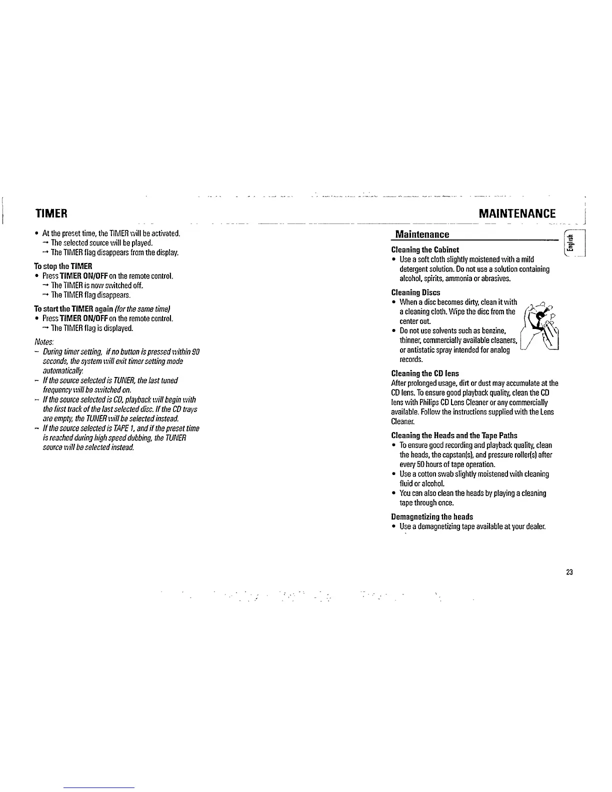 Philips FW 855C - Timer Operation and Maintenance; Timer Functionality; System Maintenance