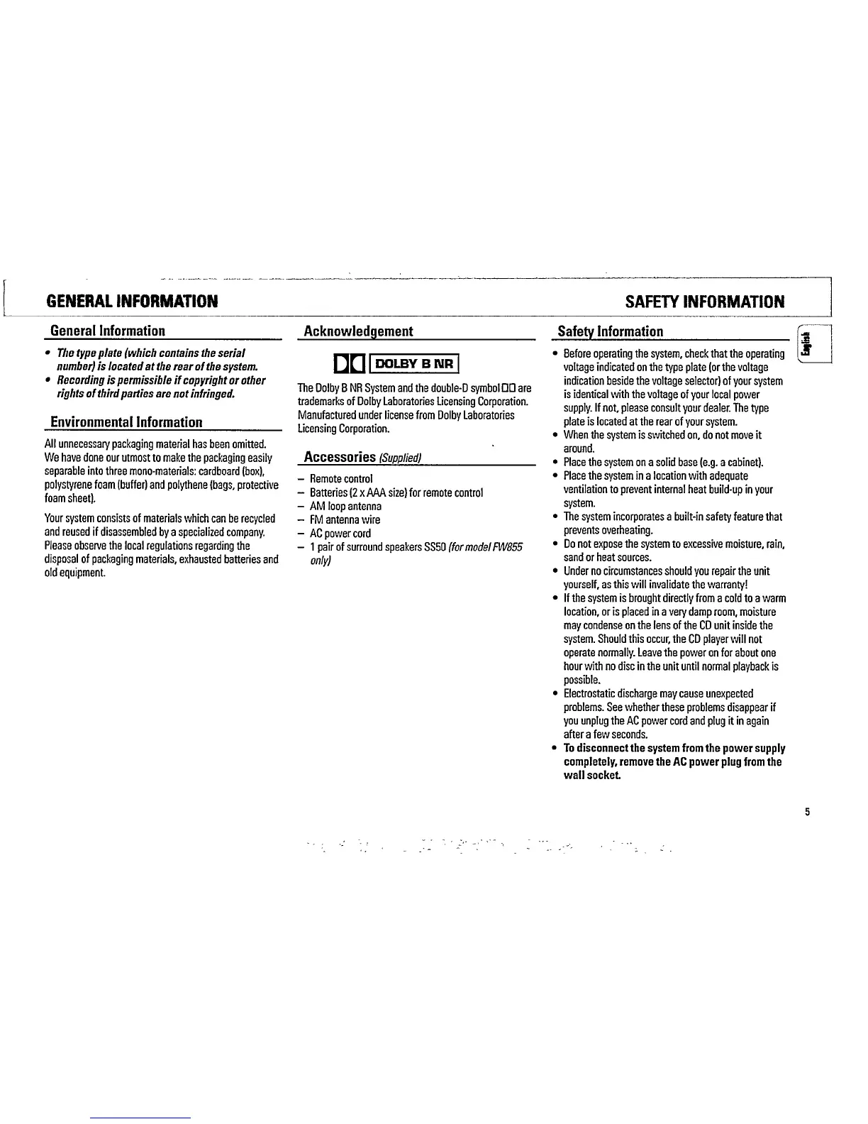 Philips FW 855C - General Information; Safety Information; Environmental Information; Acknowledgements