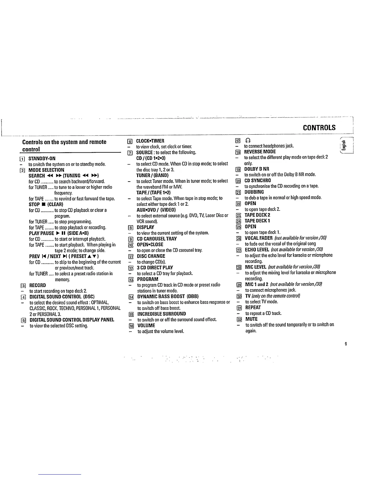 Philips FW 855C - Control Functions Explained; System Unit Controls; Remote Control Functions