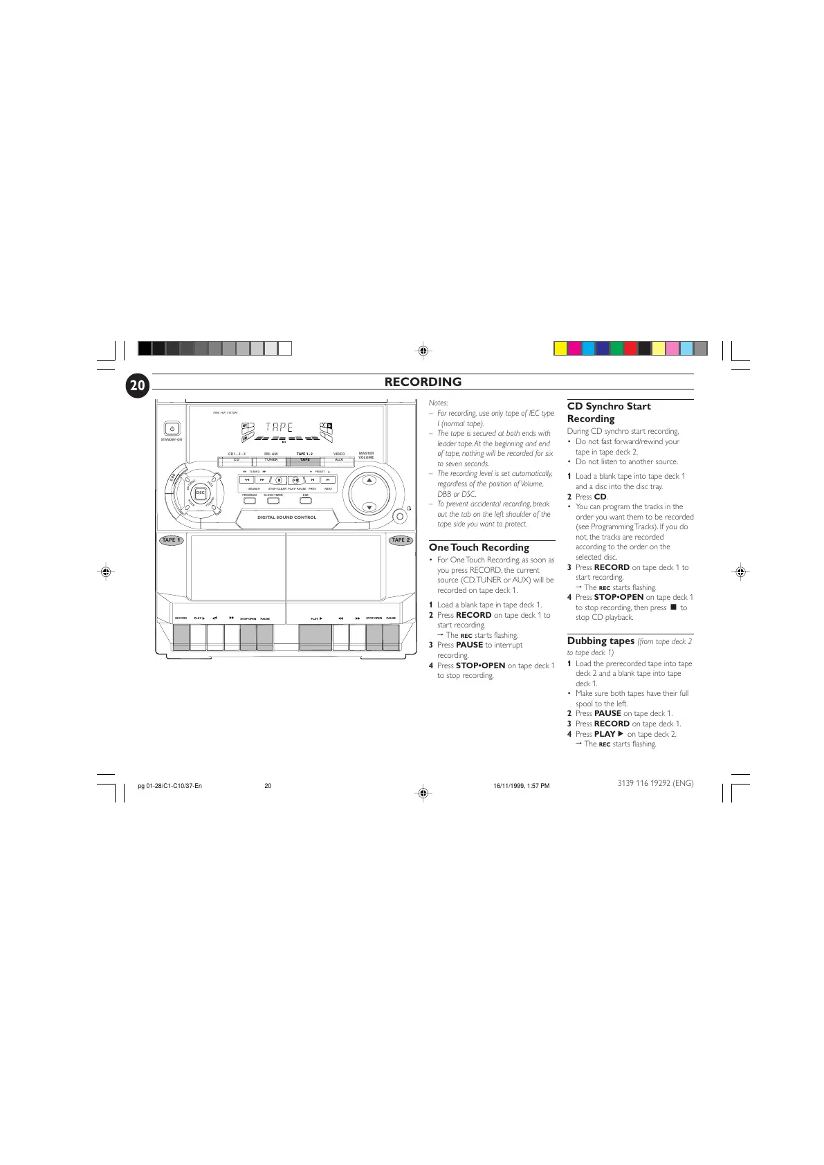to tape deck 1)