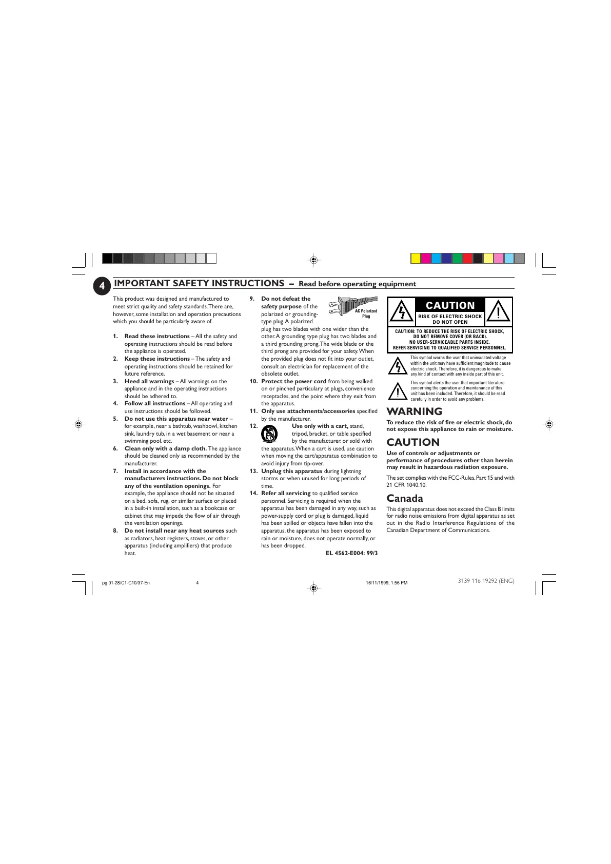 Philips FW-C10 - Important Safety Instructions