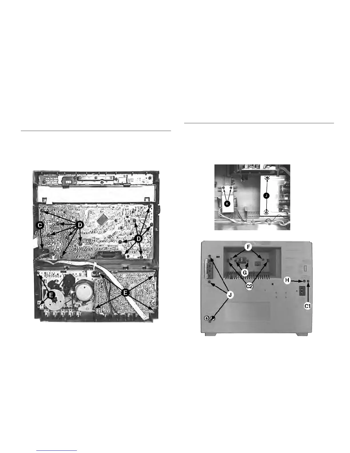 2) Remove 2 screws F, 2 screws G and uncatch C2 to
