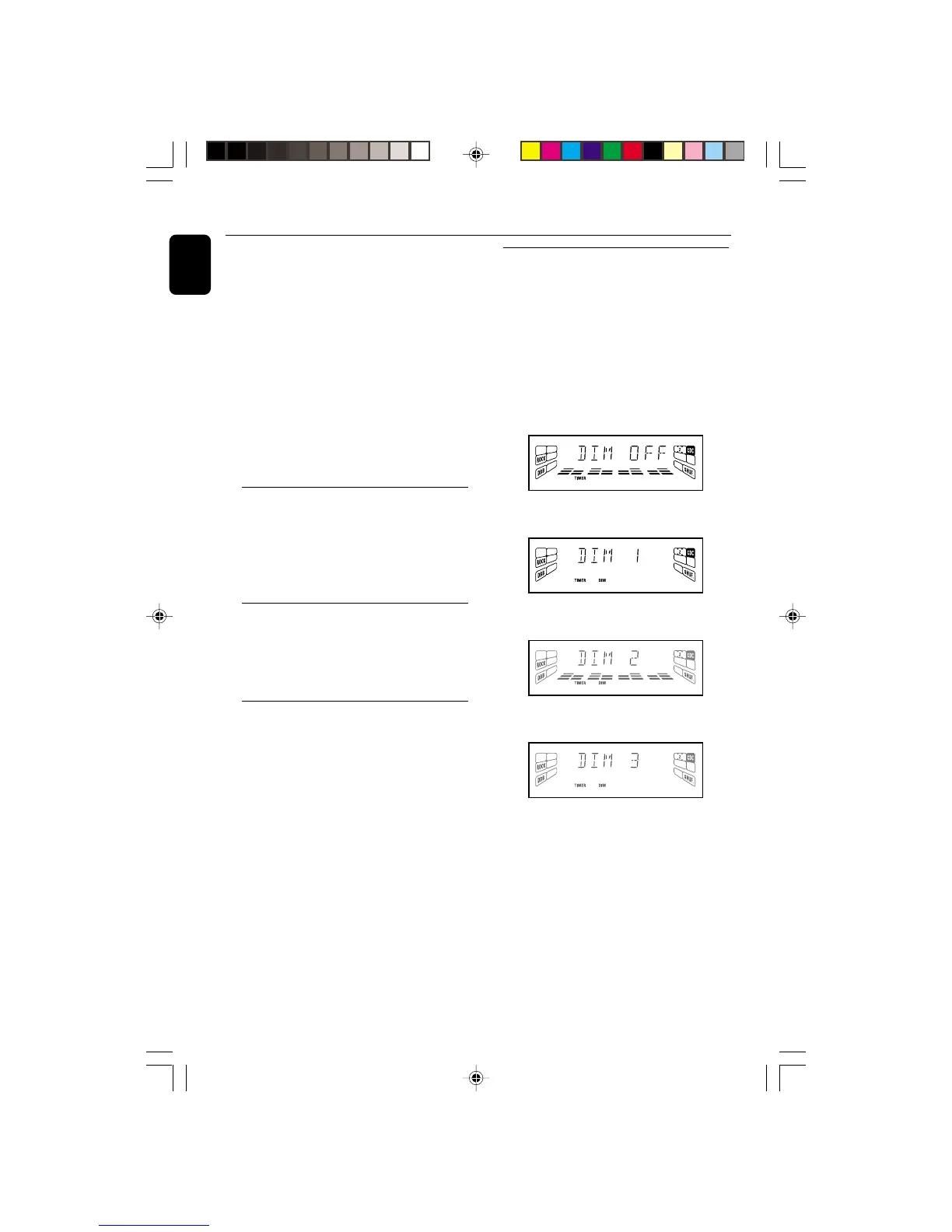 ➜ "DIM 1", "DIM 2", "DIM 3" or "DIM OFF"