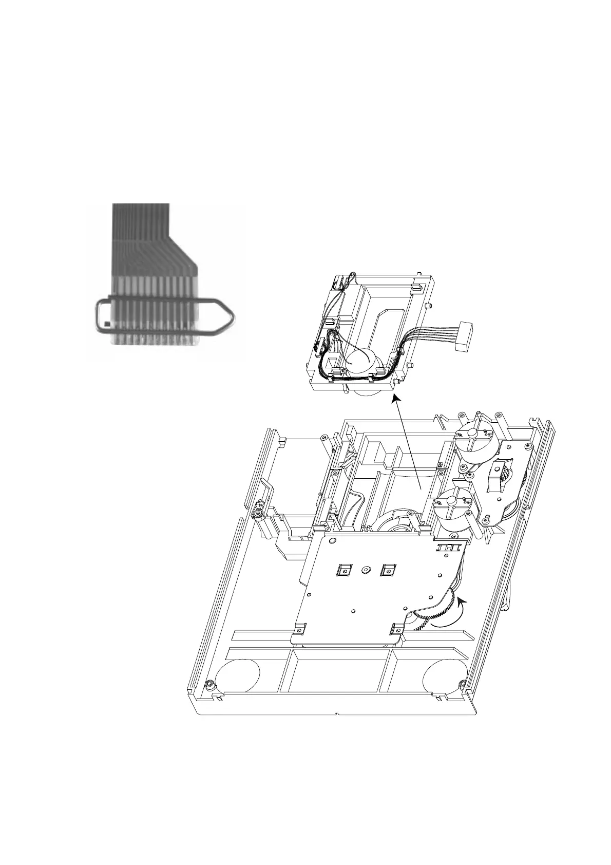 6. Replace CD drive (pos 100). The wire tree of JST
