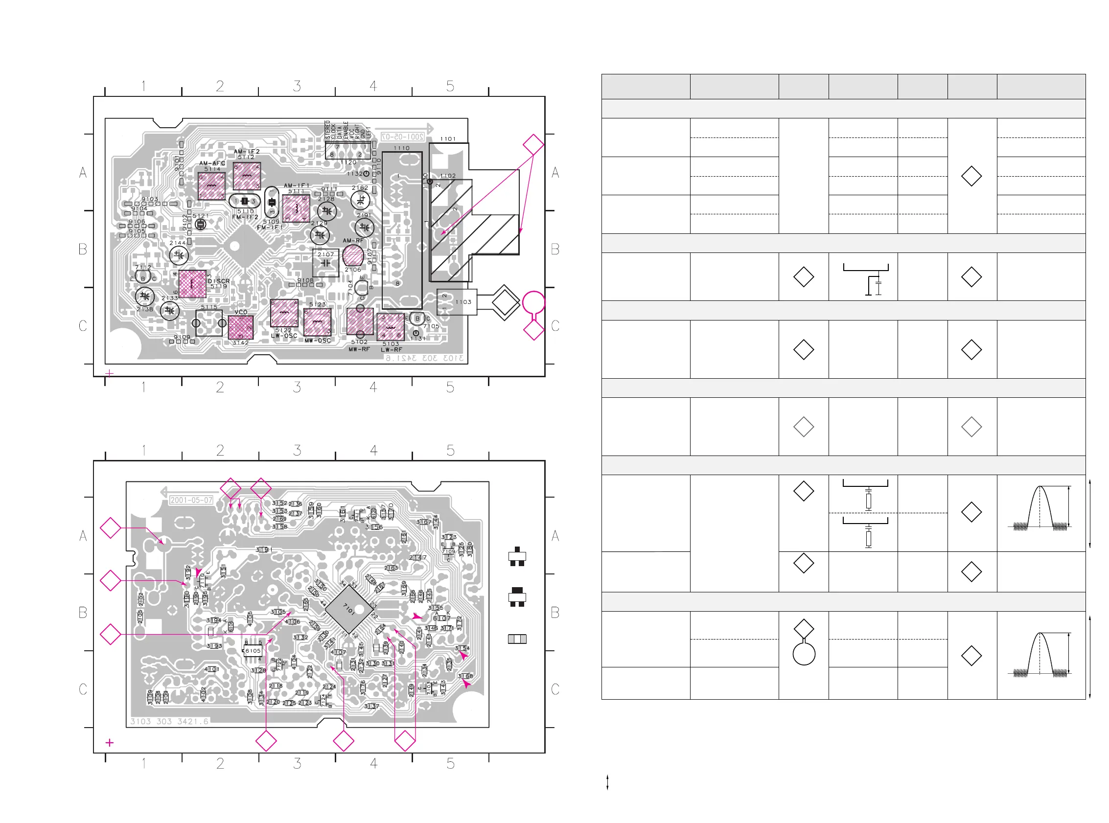 TUNER ADJUSTMENT TABLE