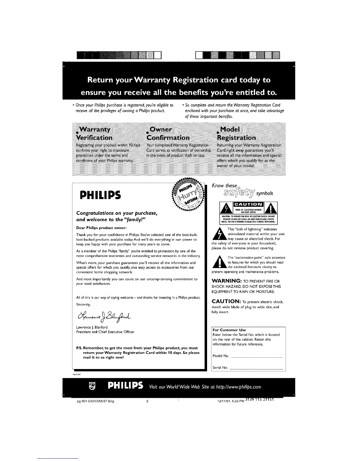 receive all the privileges of owning a Philips producL enclosedwith your purchase at once,and take advantage