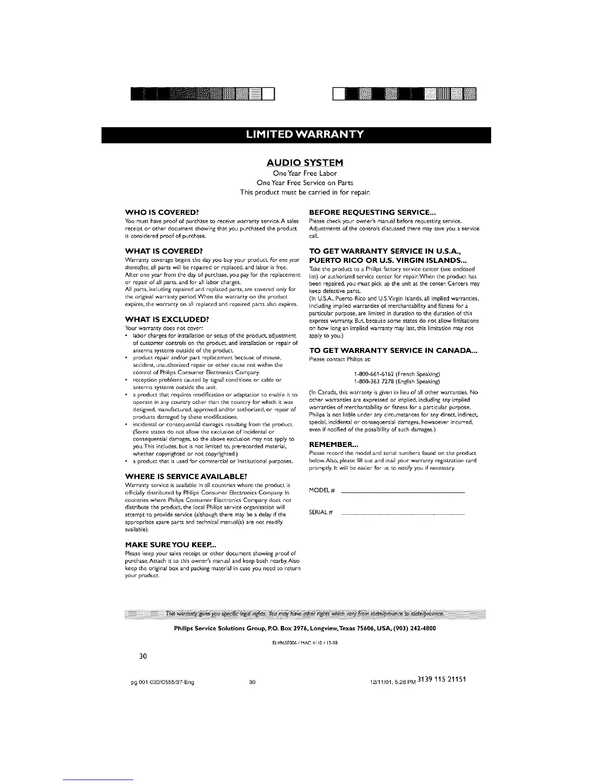 Philips Servi_e Solutions Group. RO. Box 2976, Longview, T_xas 75606, USA, (903) 242=4800