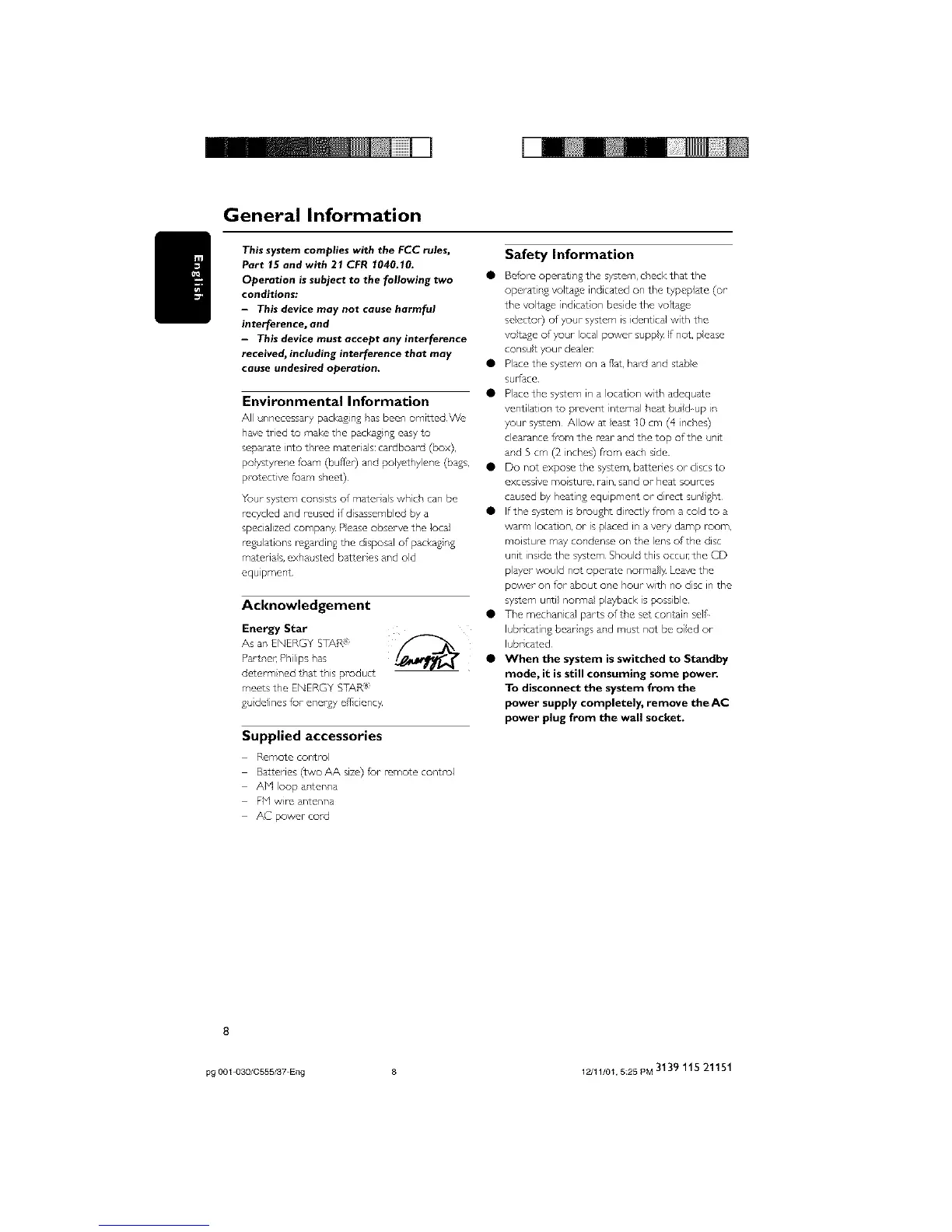 pg O01 030/0555/37 Eng 8 12/11/01, 5;25 PM 3139 115 21151