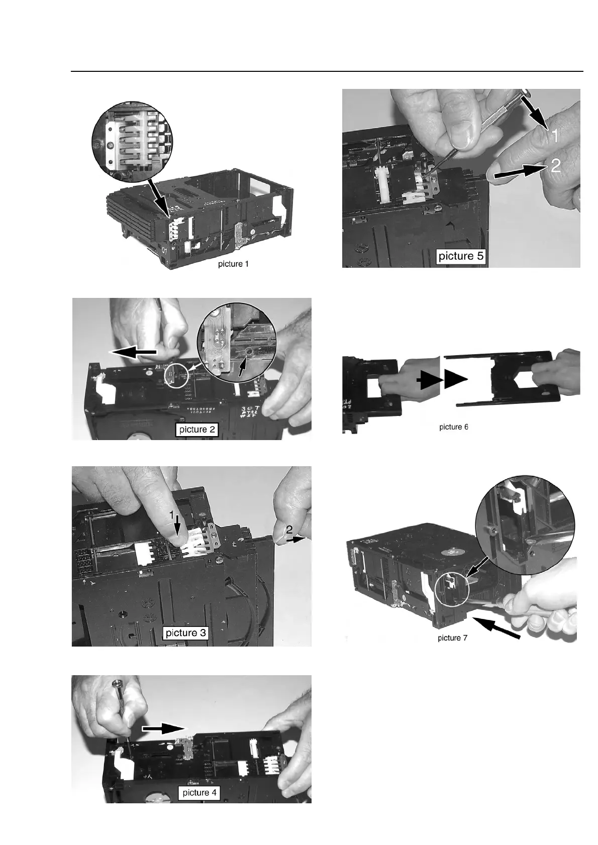 Release snap as shown in picture 5 and pull tray out.