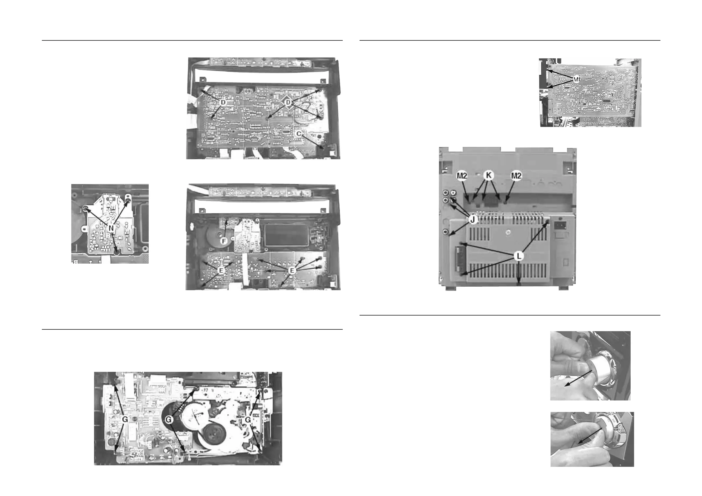 1) Remove 3 screws J and uncatch M1 as indicated to