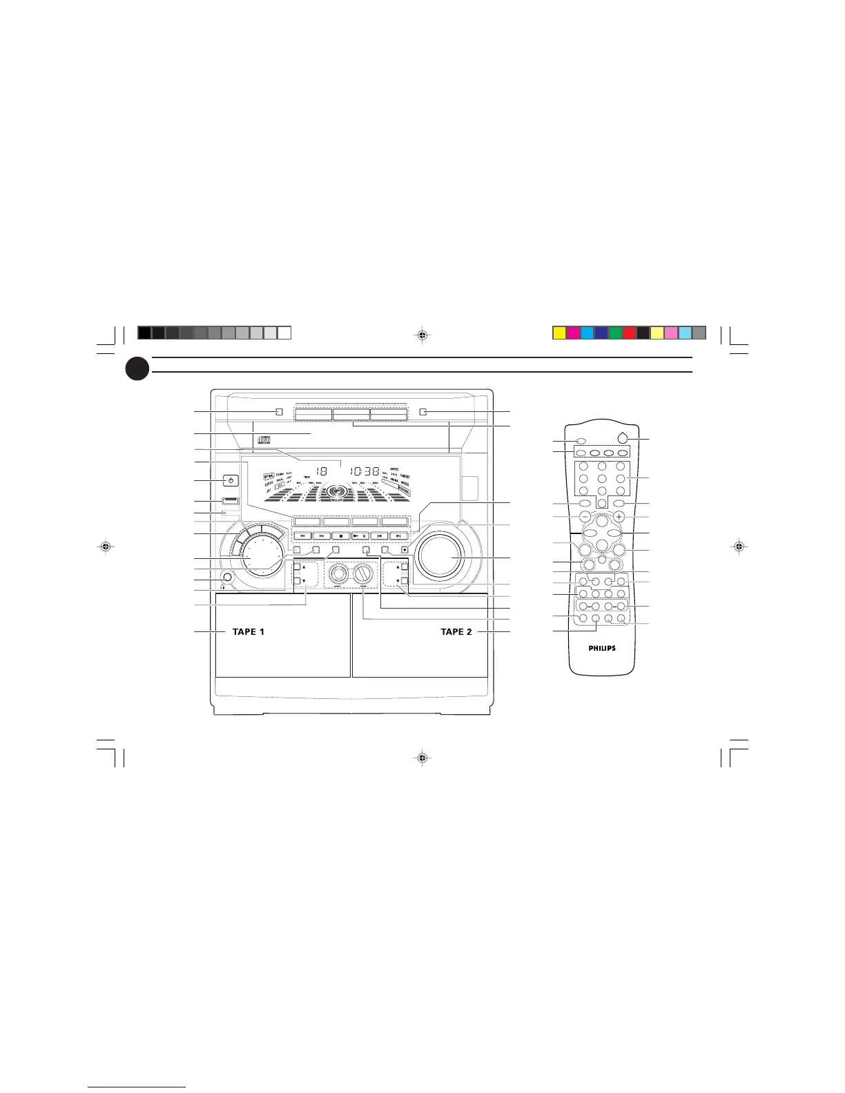 Philips FW-C85 - System Controls Overview; Front Panel and Remote Layout