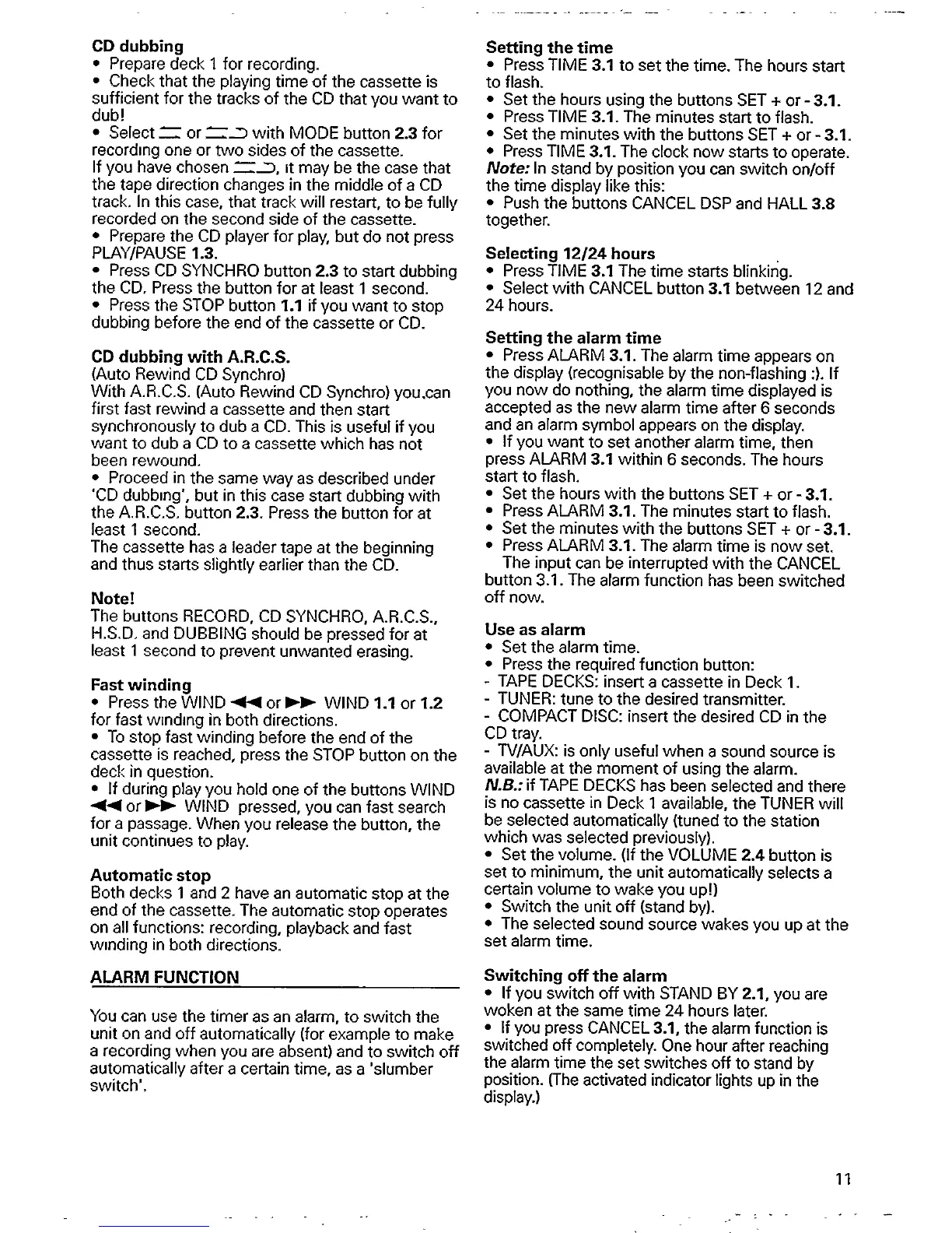 Philips FW2017 - Alarm and Timer Functions; Setting Alarms and Timer