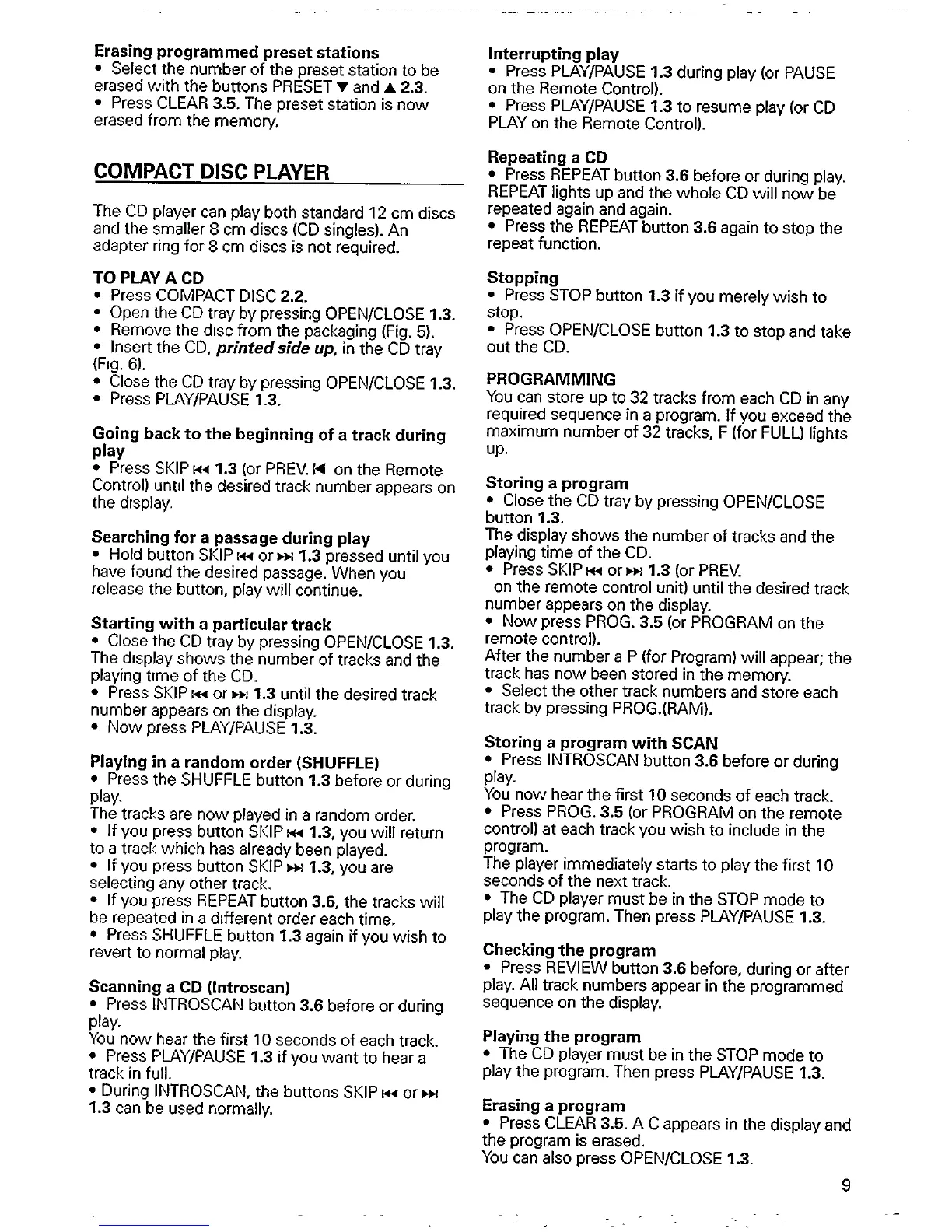 Philips FW2017 - Compact Disc Player Operation; Basic CD Playback and Navigation; Advanced CD Playback Modes