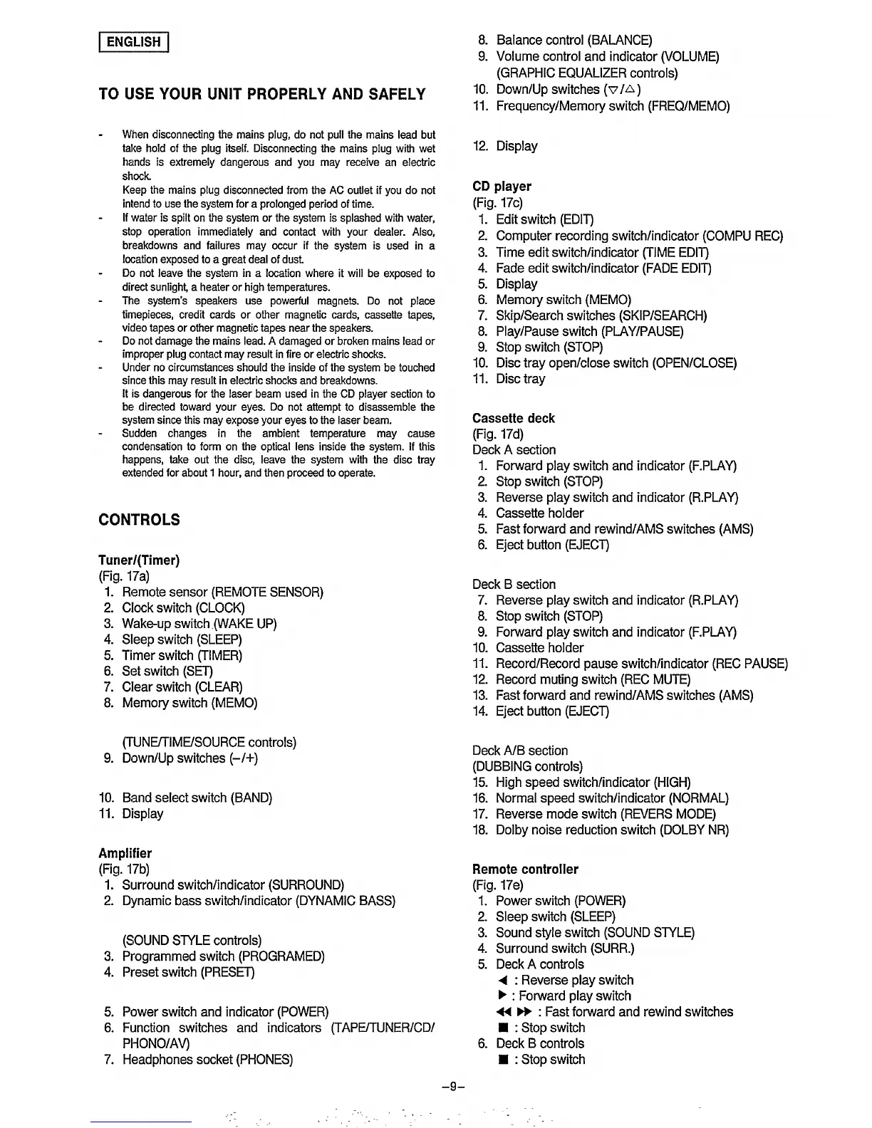 Philips FW2019 - Safe and Proper Unit Operation; General Safety Guidelines; System Controls Overview