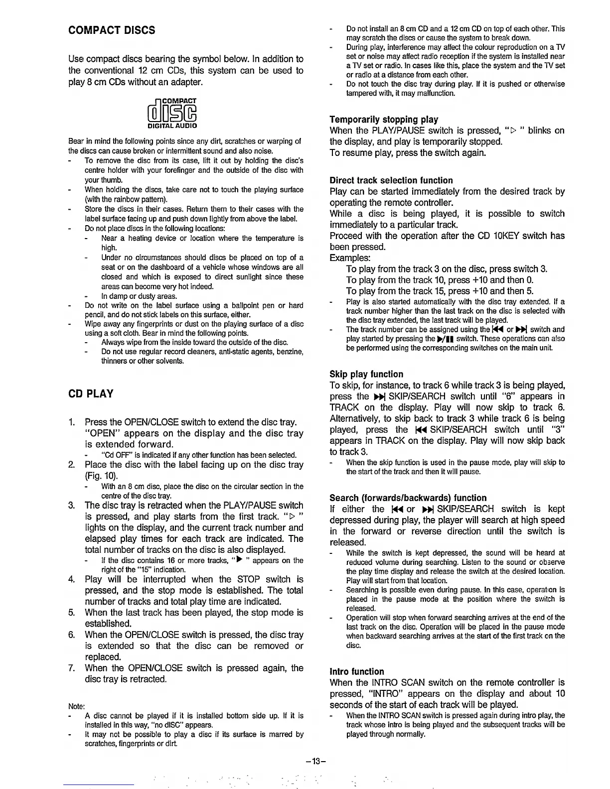 Philips FW2019 - CD Playback Operations; Handling CDs and Basic Playback; CD Playback Controls; Direct Track Selection