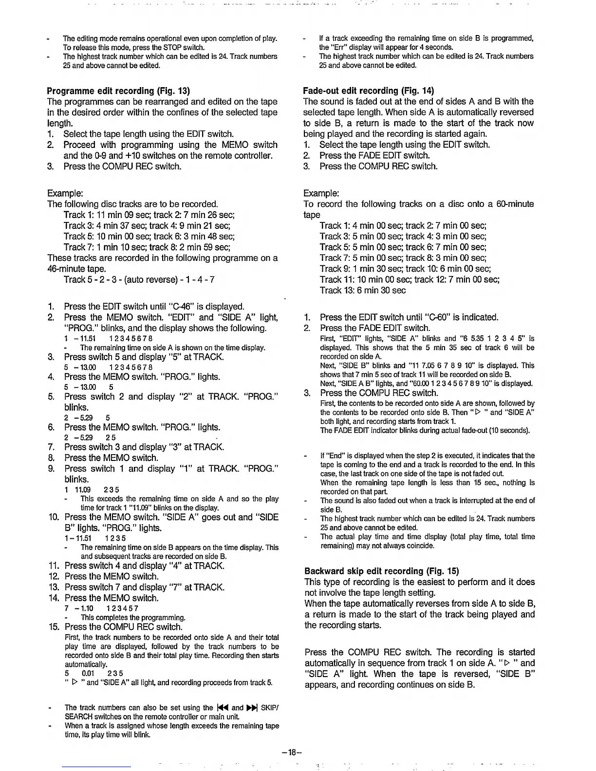Philips FW2019 - Programmed Edit Recording; Fade-out Edit Recording; Backward Skip Edit Recording