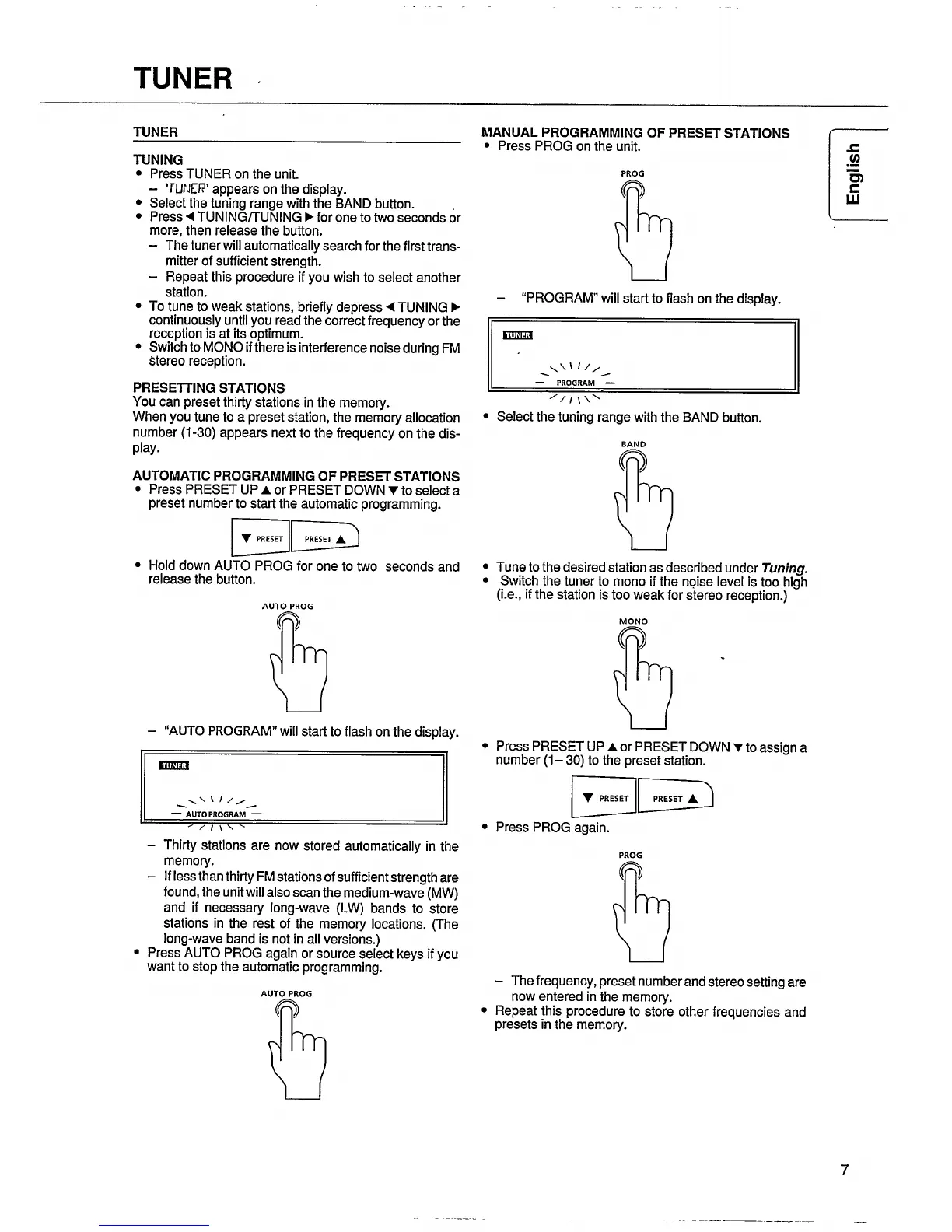 Philips FW26/25 - TUNER OPERATION; Tuning and Presetting Stations; Manual Station Programming
