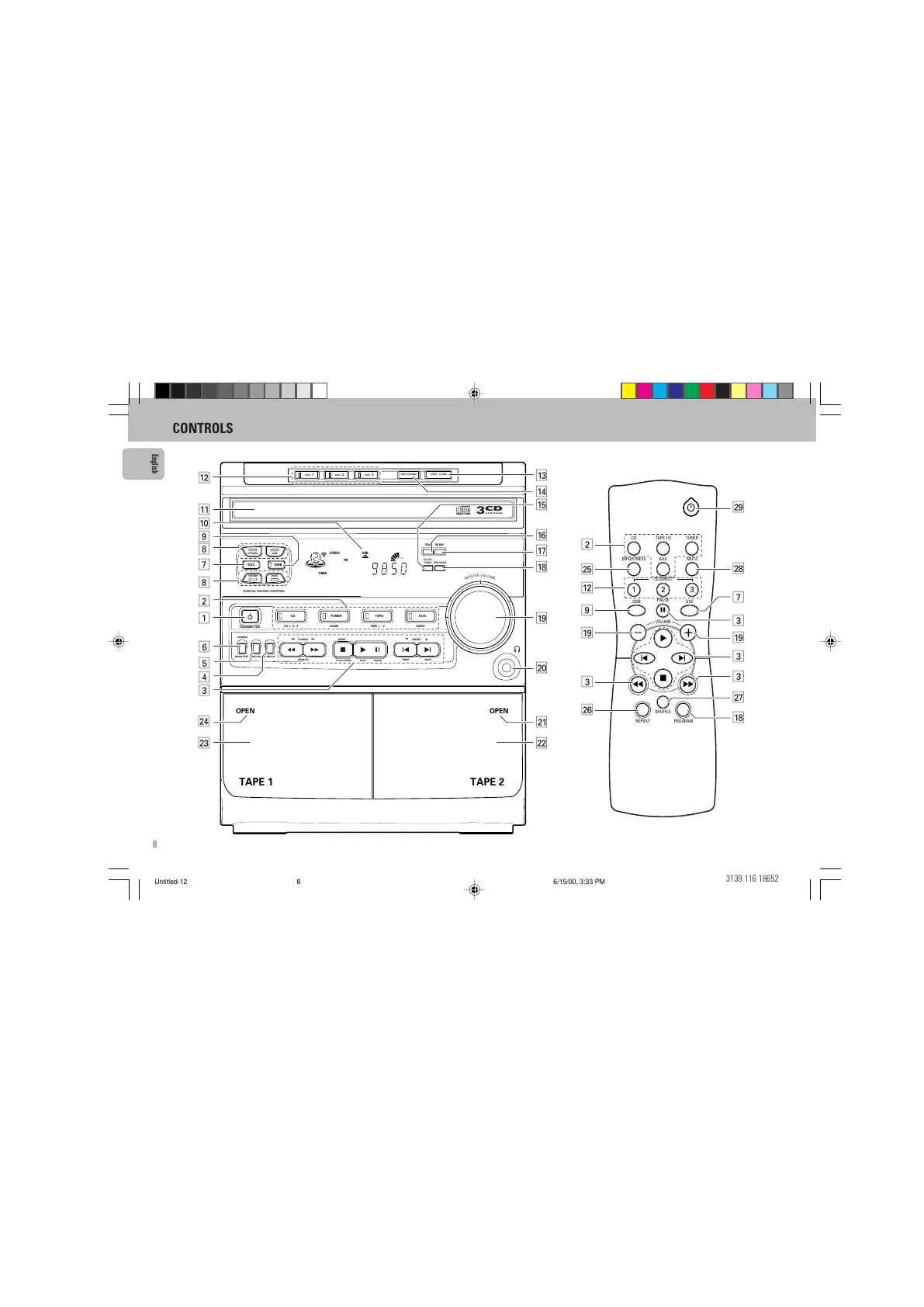 Philips FW350C - System Controls: Main Unit; Main Unit Buttons and Displays
