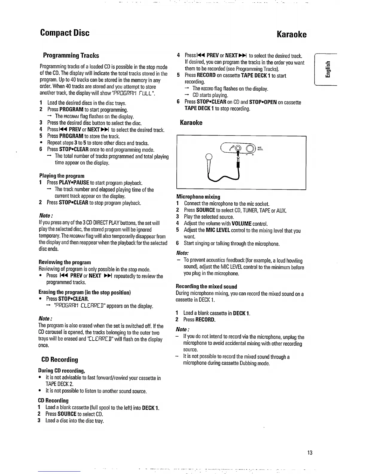 Philips FW352C/25 - Compact Disc Player - Programming and Recording; Programming CD Playback Order; Managing CD Programs; Recording CDs to Cassette