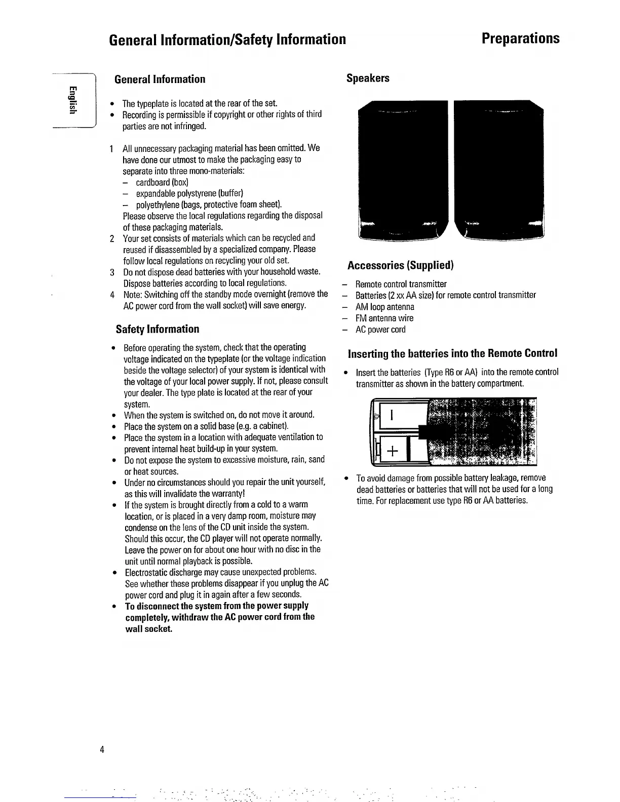Philips FW352C/25 - Getting Started and Safety; Safety Precautions