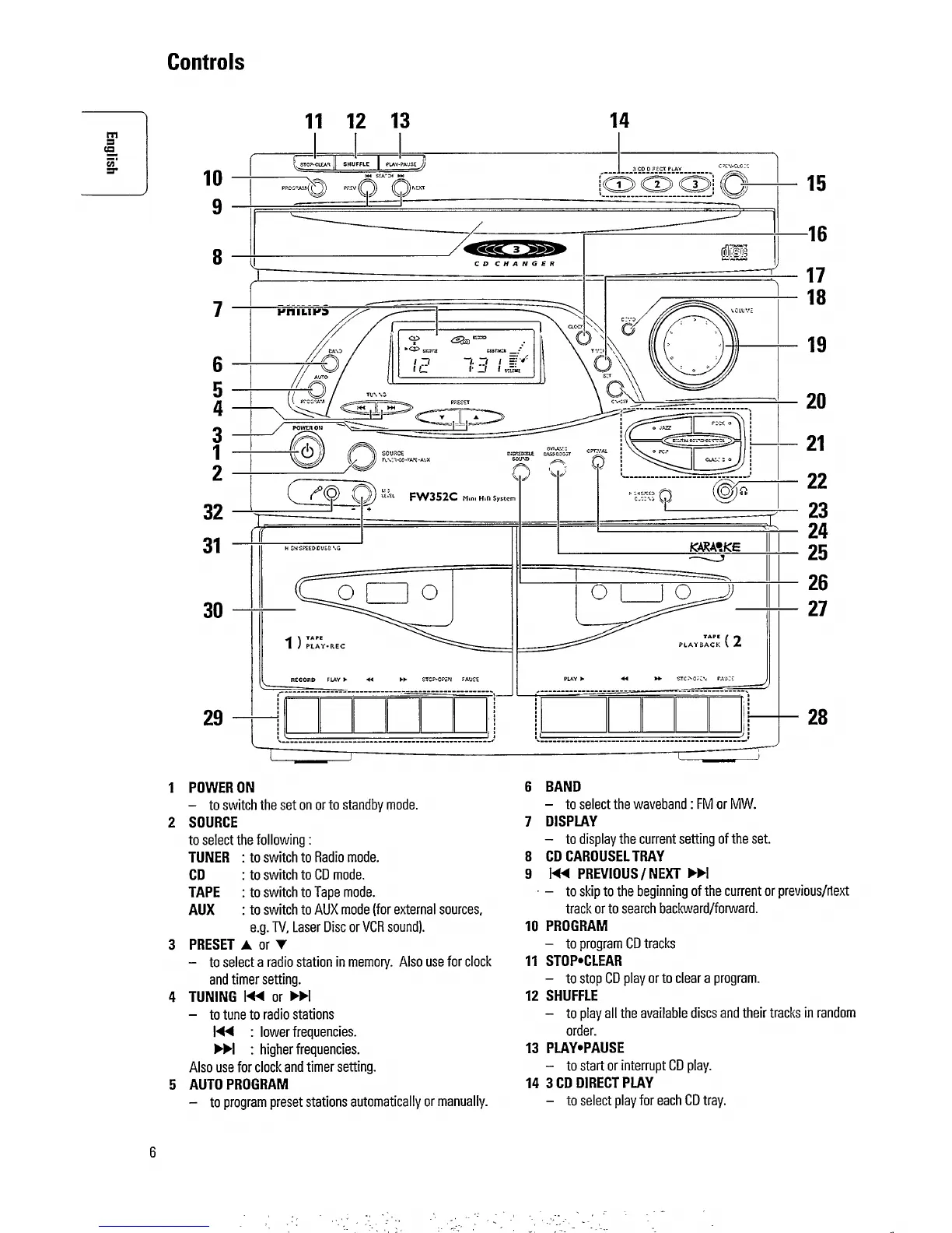 Philips FW352C/25 - System Controls and Operation; Front Panel Controls Overview