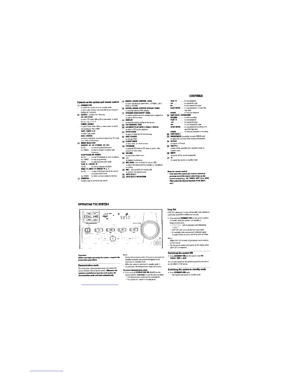 Philips FW380C - System Controls and Basic Operation; System and Remote Control Layout; System Startup and Operating Modes