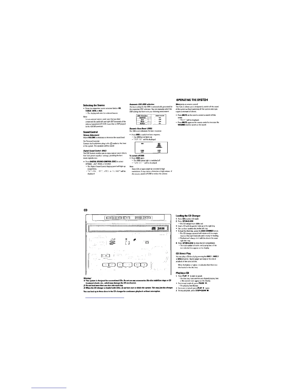 Philips FW380C - Operating the Philips FW380 C System; Source Selection, Volume, and Mute Functions; CD Player Functions: Loading and Playback